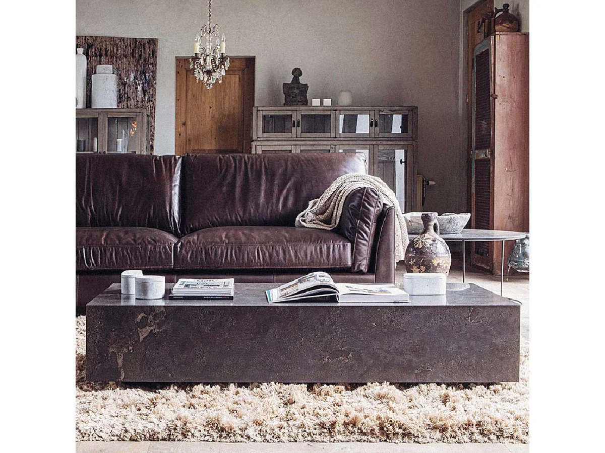 Table basse rectangulaire revêtement pierre bleue Pierre Gris - Minéral Interior's