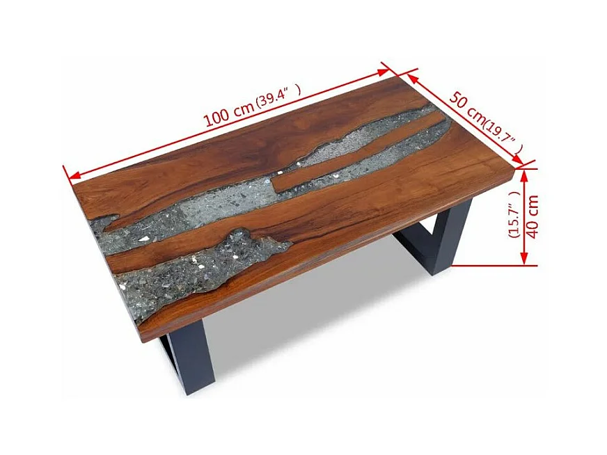 Table basse rectangulaire teck massif clair et manguier noir Tamie 2