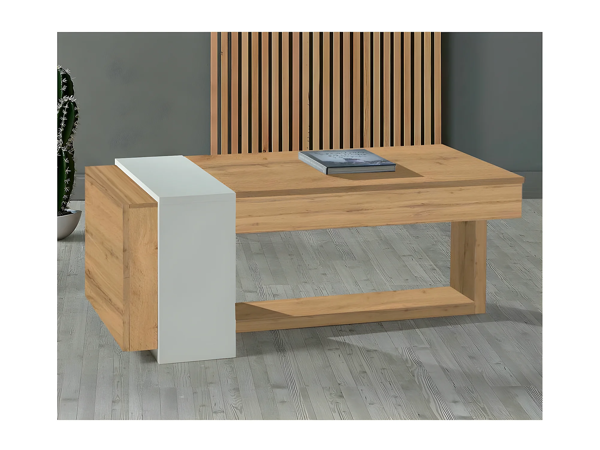 Table basse relevable 2 tiroirs Chêne blond/Bois blanc - ESTEBAN
