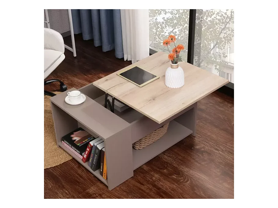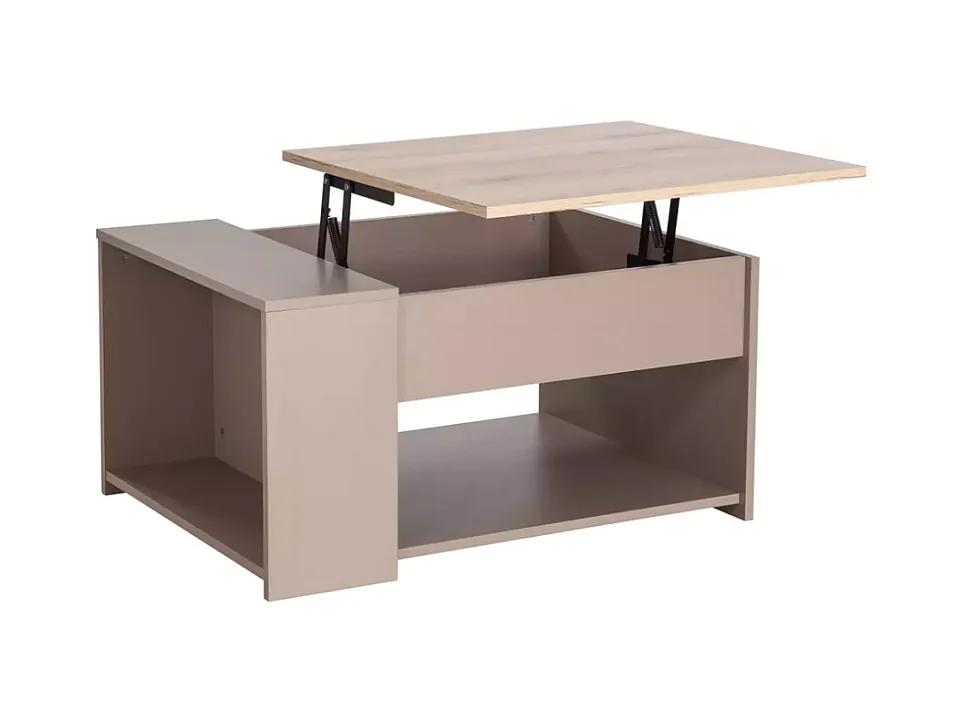Table basse rectangulaire table de salon plateau relevable 2 niches coffre en bois bois clair