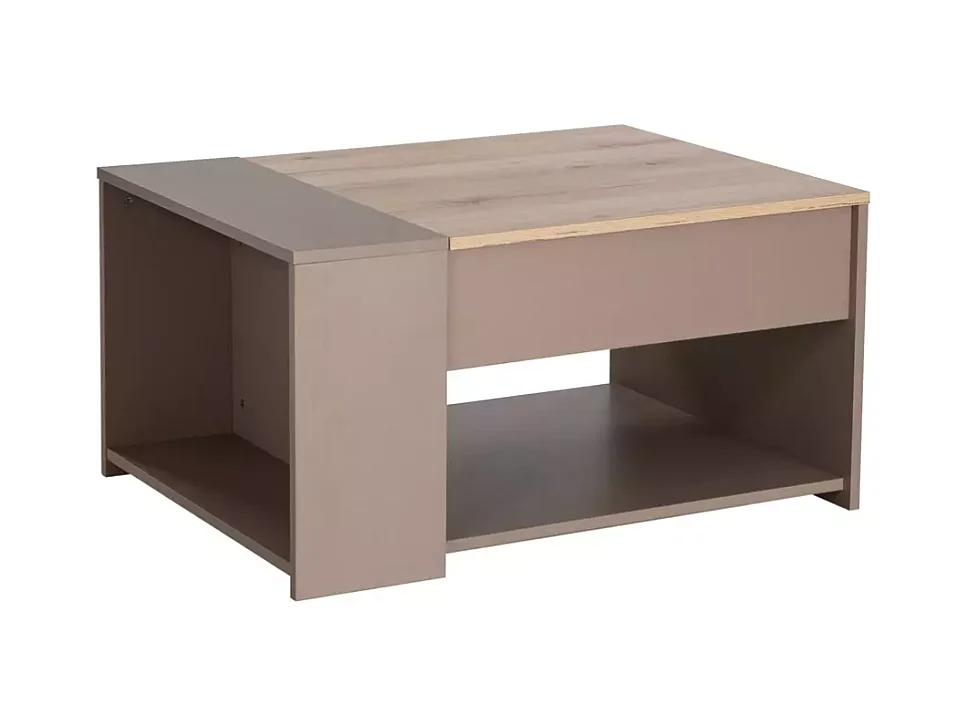 Table basse relevable 100 x 50 cm avec rangement chêne LUCASE