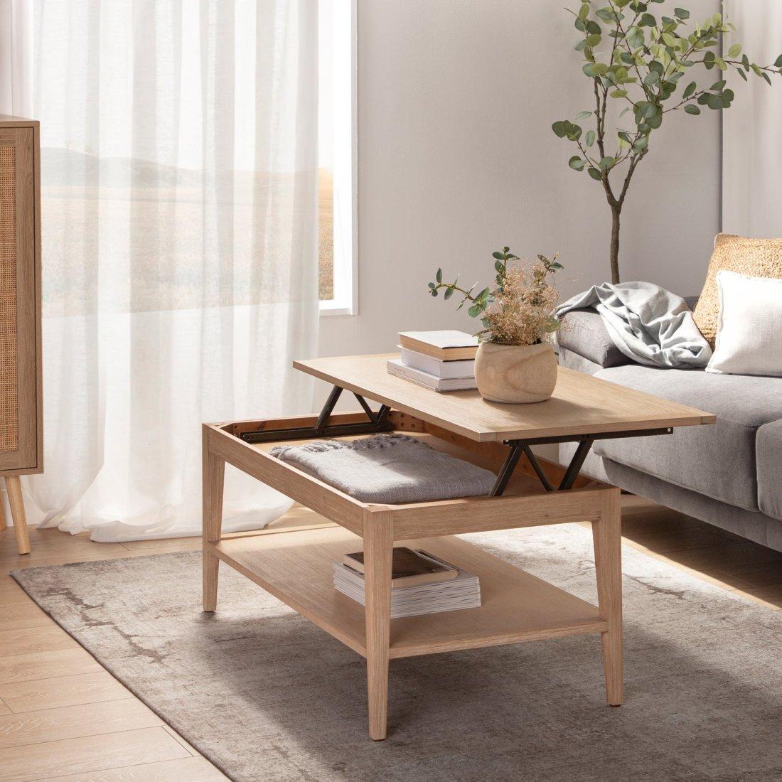 Table basse relevable en bois naturel 100x45 cm-Mara