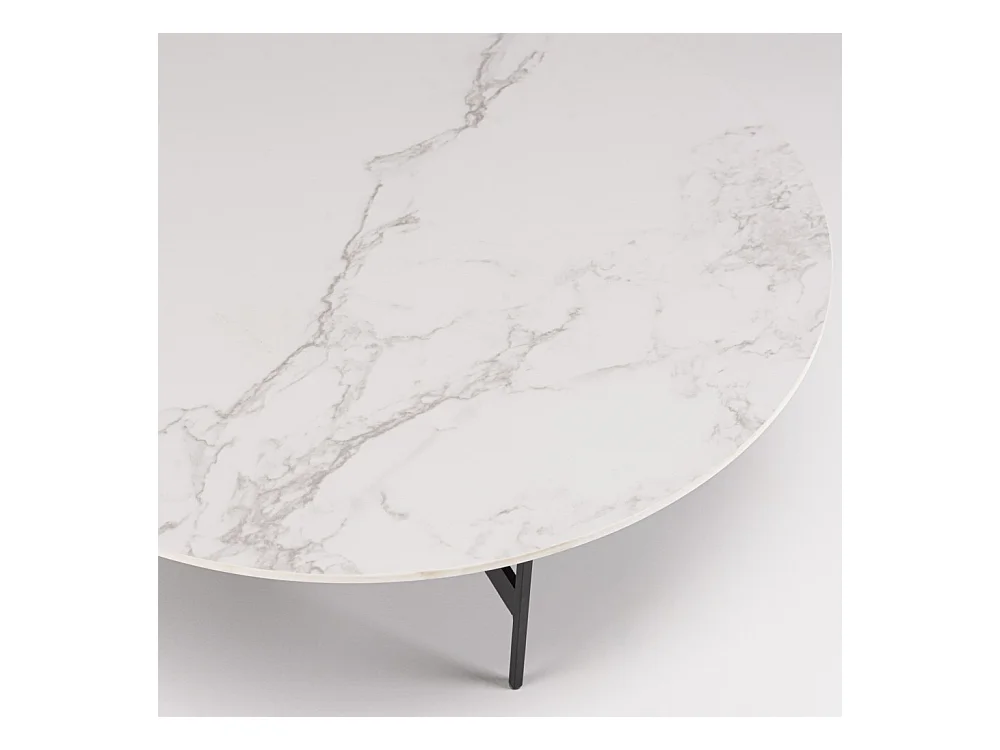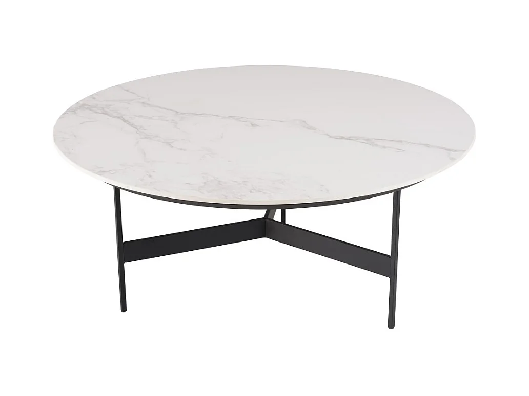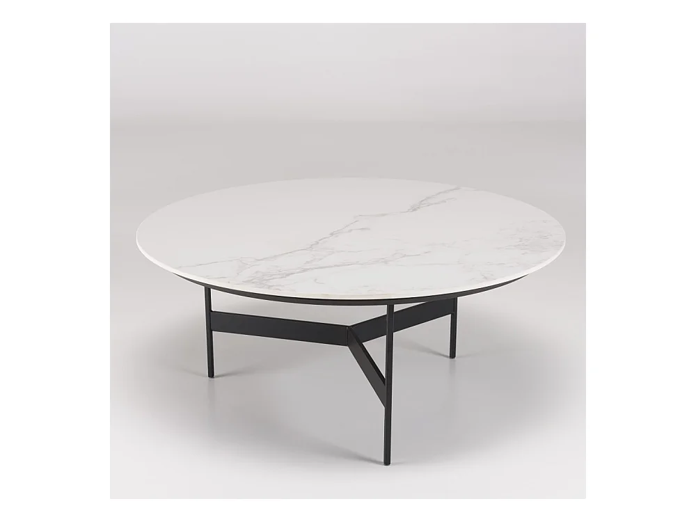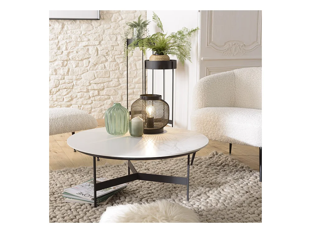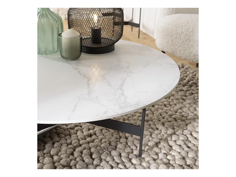 DALY - Table basse ronde 78x78cm plateau effet marbre piètement métal