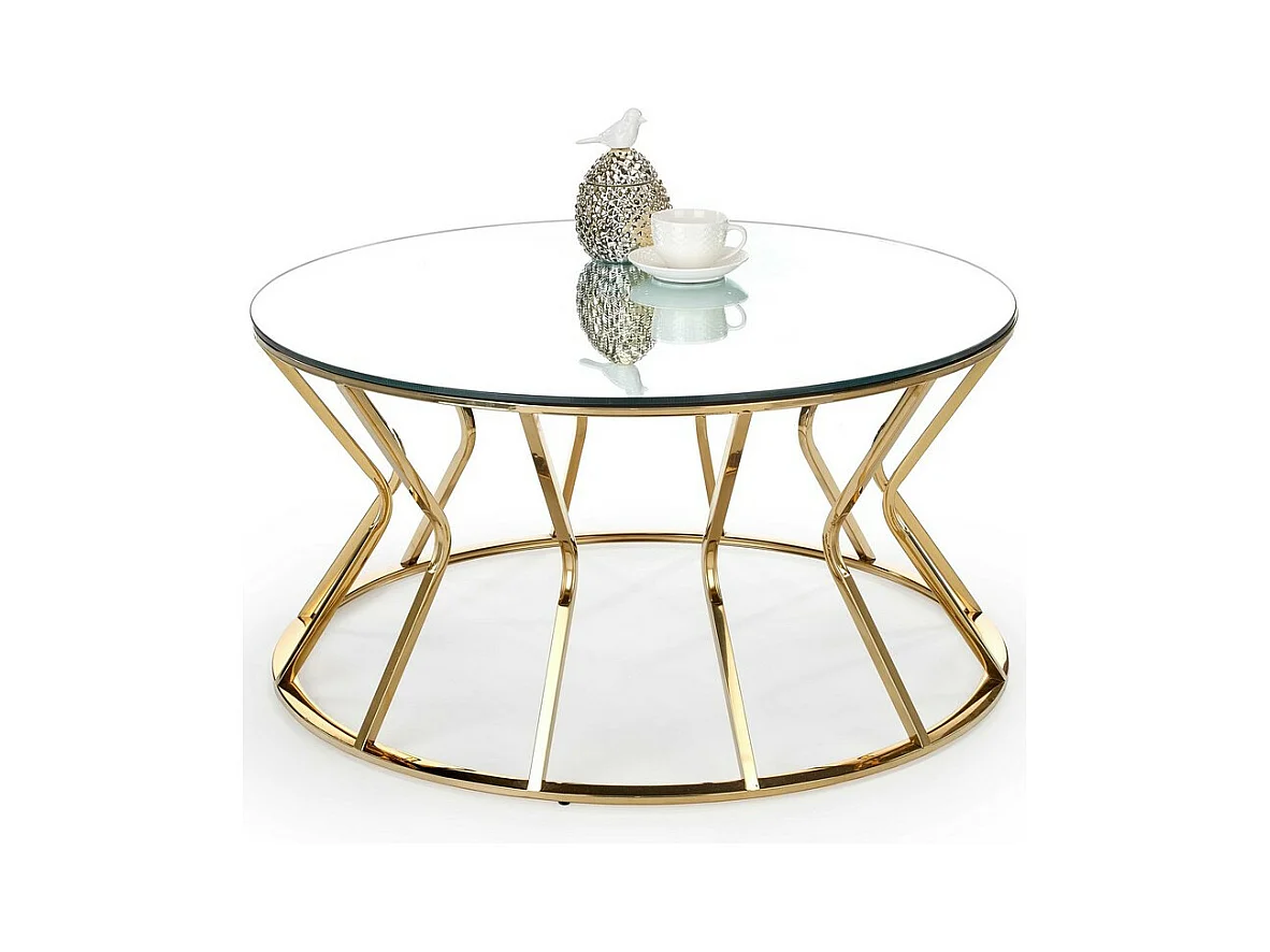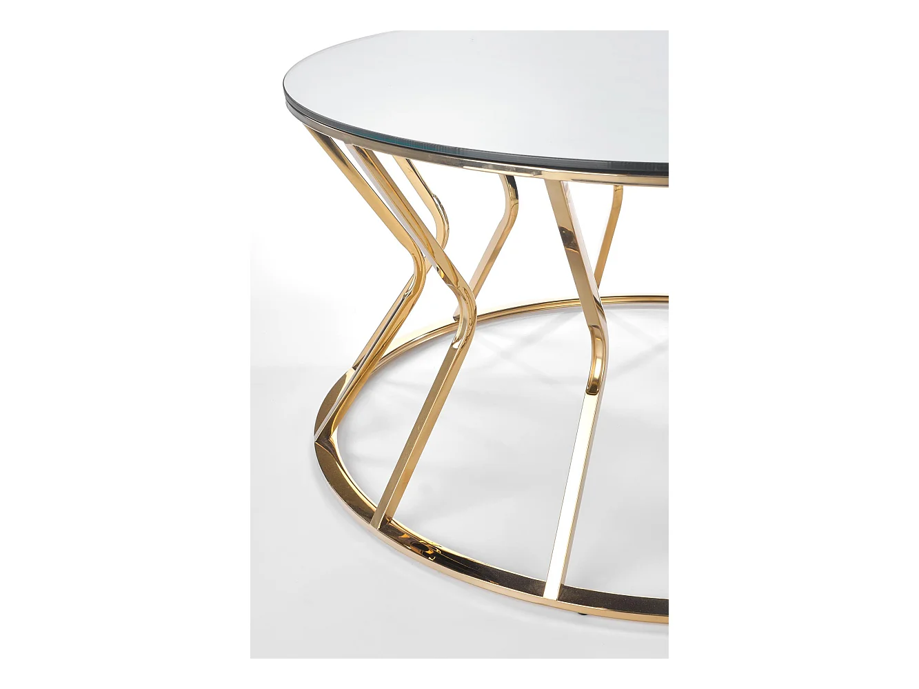 Table basse ronde 90 cm avec plateau en verre et structure en métal IDOYA