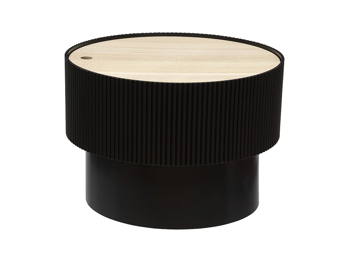 Table basse ronde avec couvercle en bois MDF coloris noir - diamètre 55 x Hauteur 38 cm