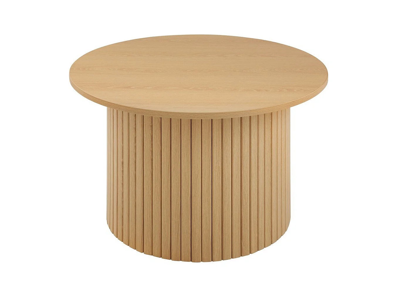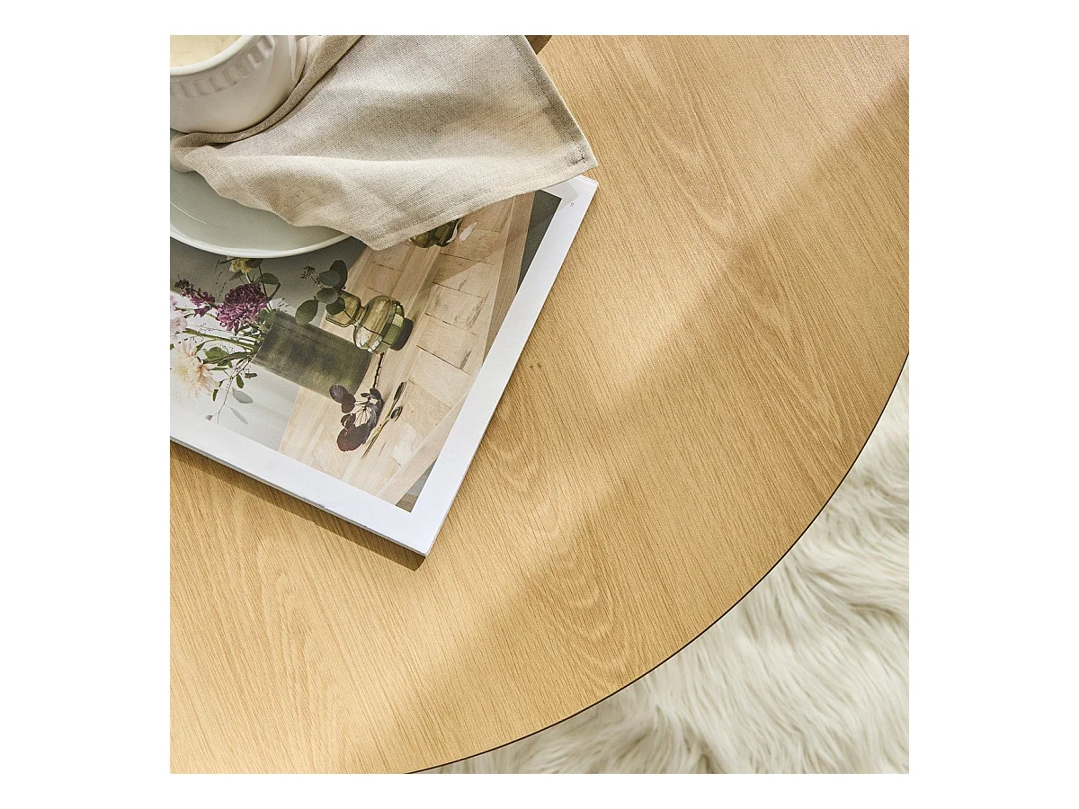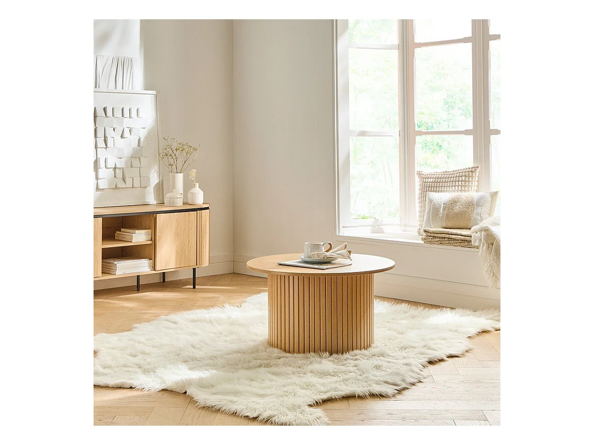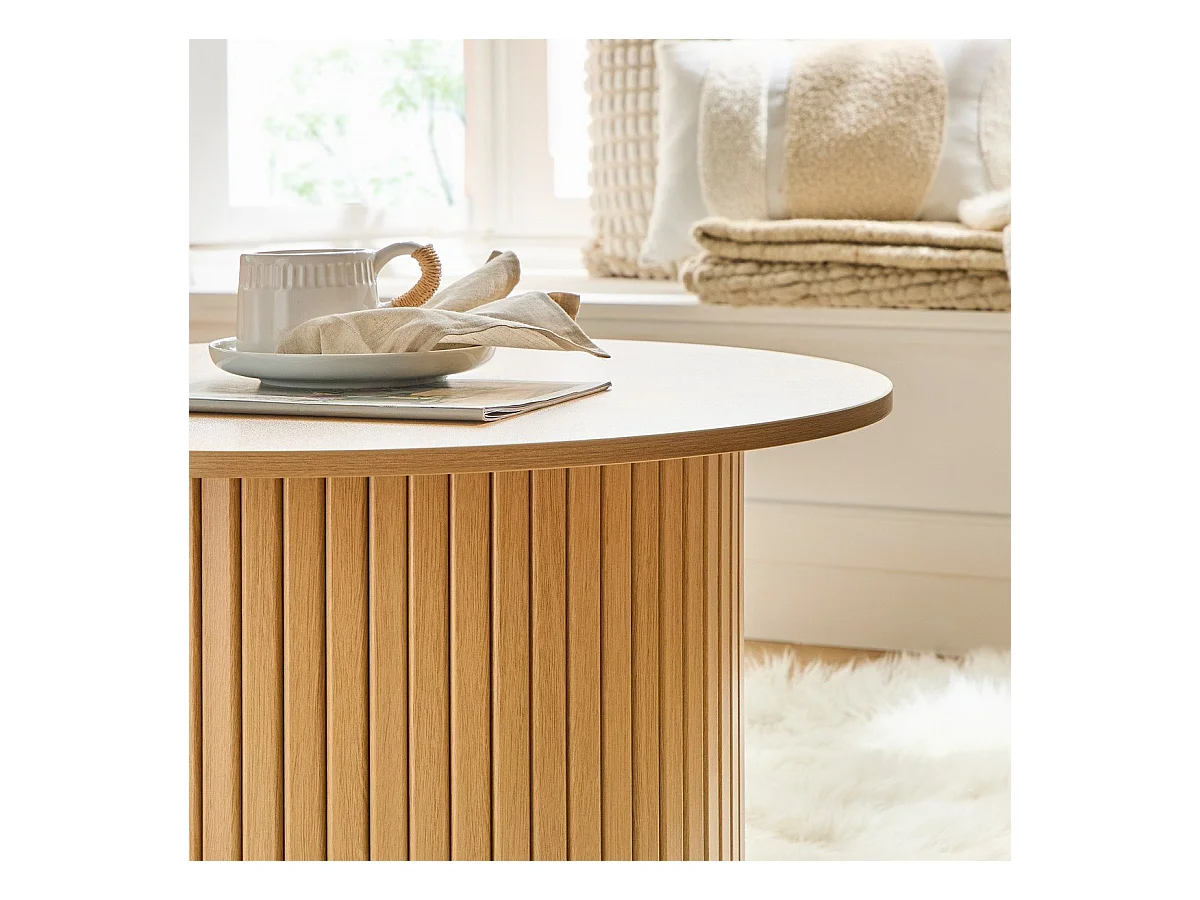 Table basse ronde avec pied à lattes décor bois - ELIE