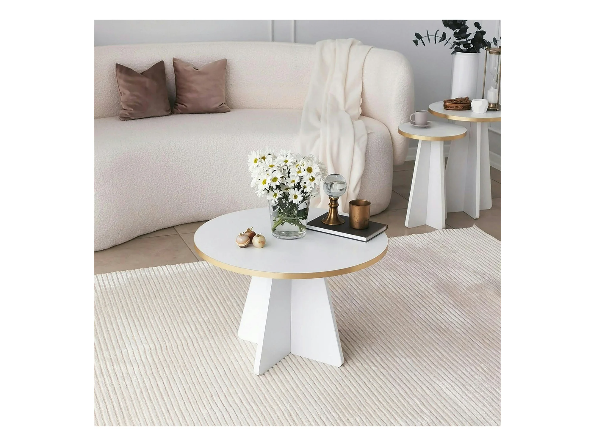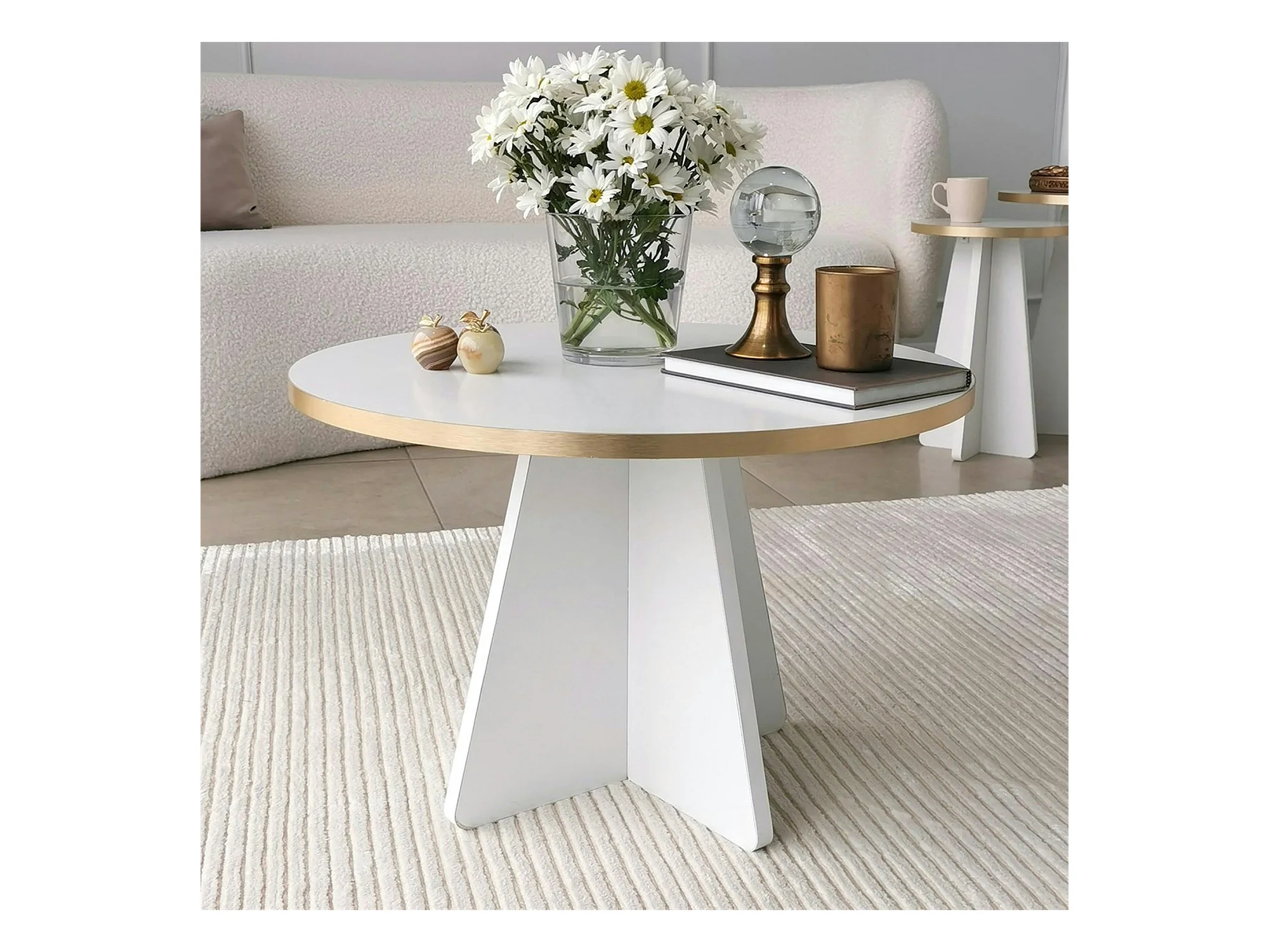 Table basse ronde blanche & pieds forme trapèze MARFA