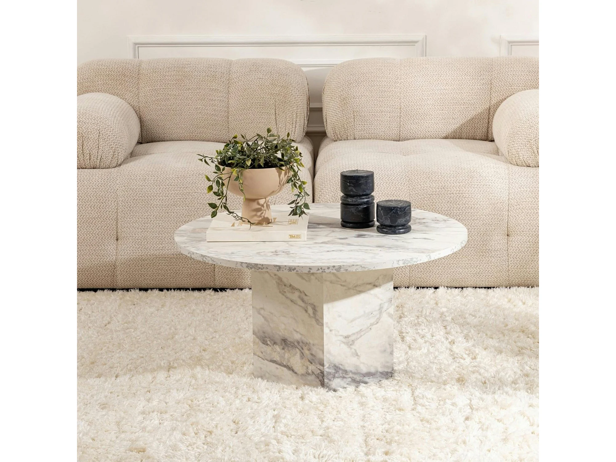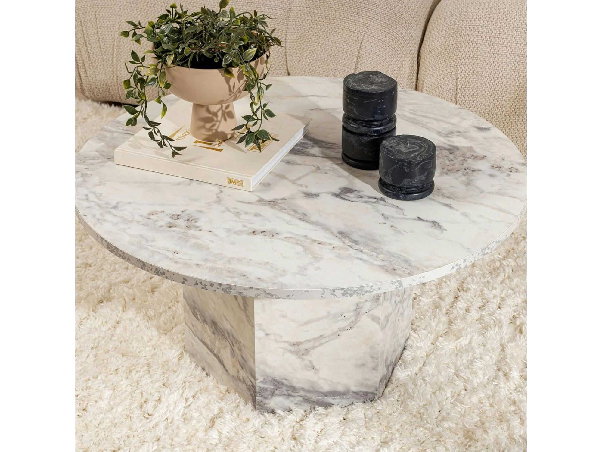 Table basse ronde effet marbre – pied hexagonal MARFA