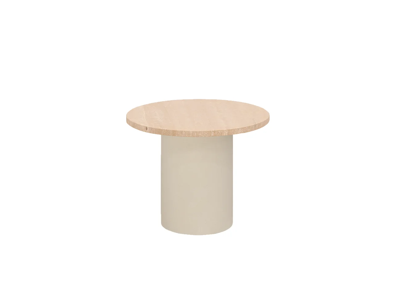 Table basse ronde en marbre travertin avec pieds en microciment teinte beige 45x60cm - LUCÍA - DECOWOOD