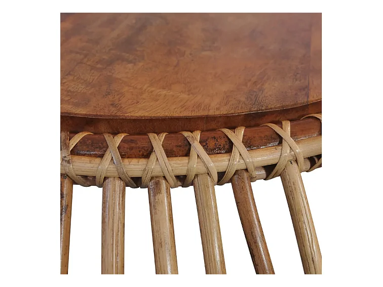 Table basse ronde rotin et teck massif foncé Maboo - Lot de 2