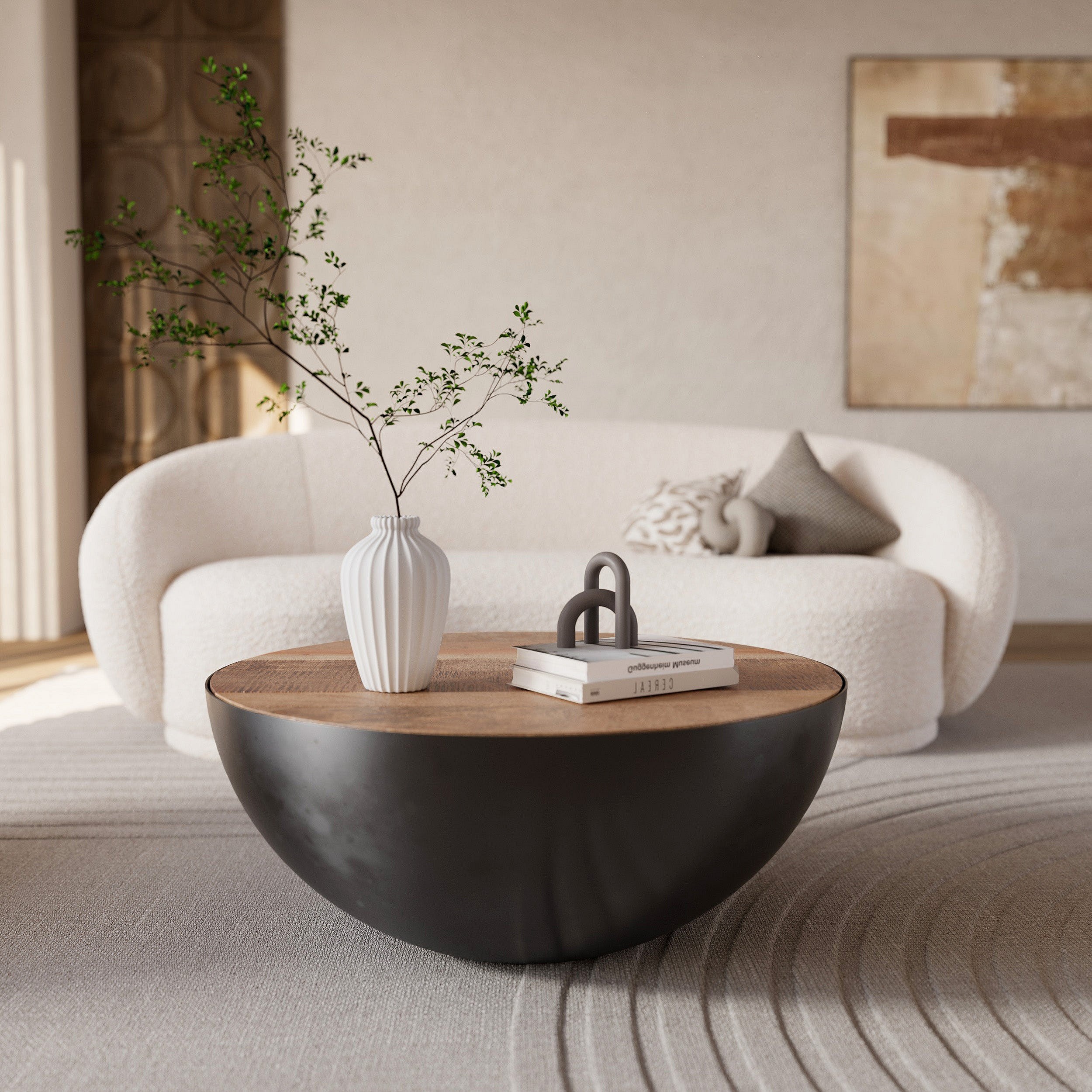 Table basse ronde en bois massif et métal D90 cm - Tajy