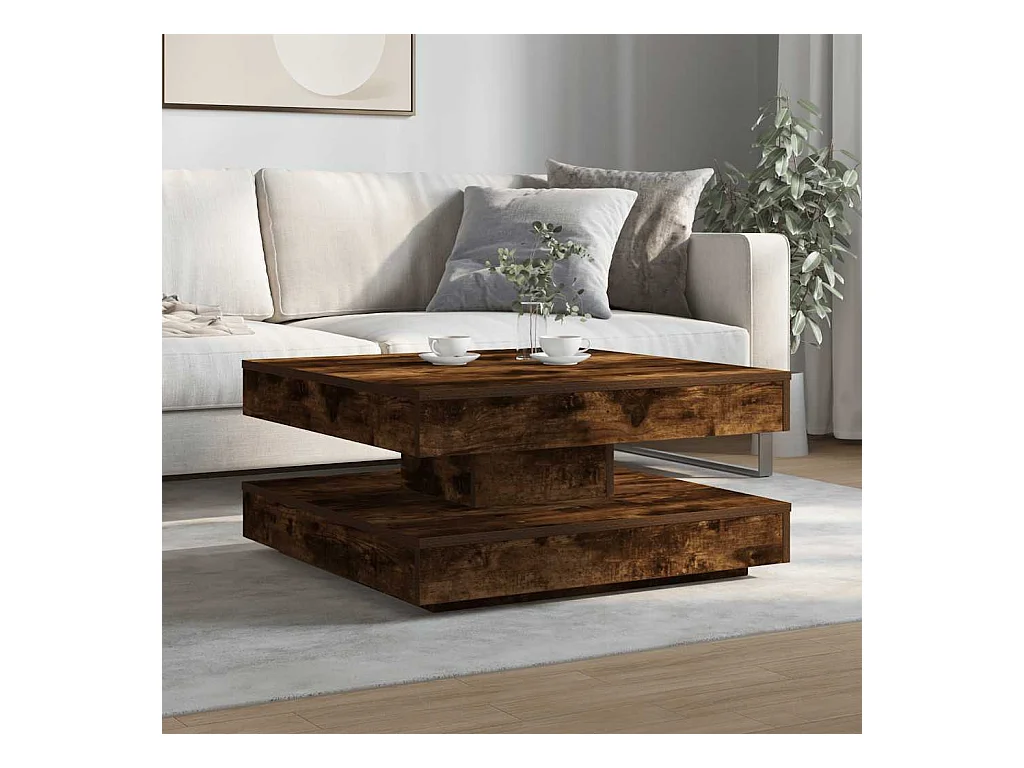 Table basse rotative à 360 degrés chêne fumé 70x70x34,5 cm