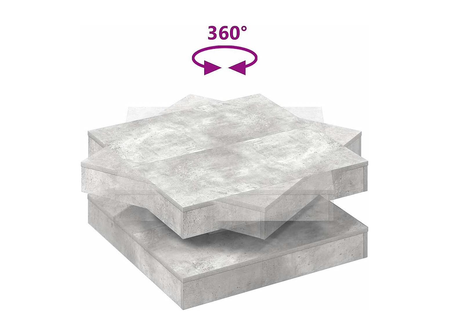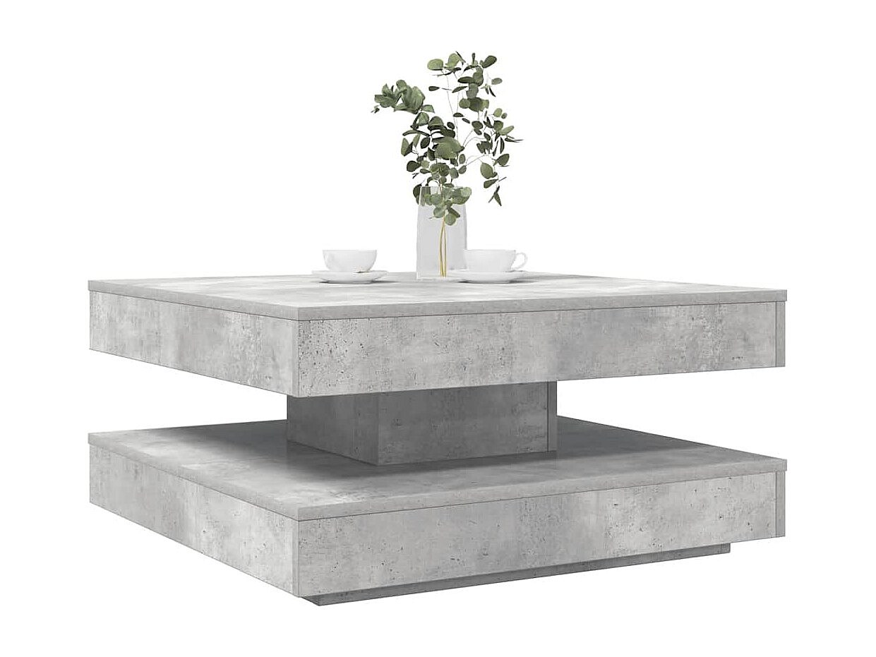Table basse rotative à 360 degrés gris béton 70x70x34,5 cm