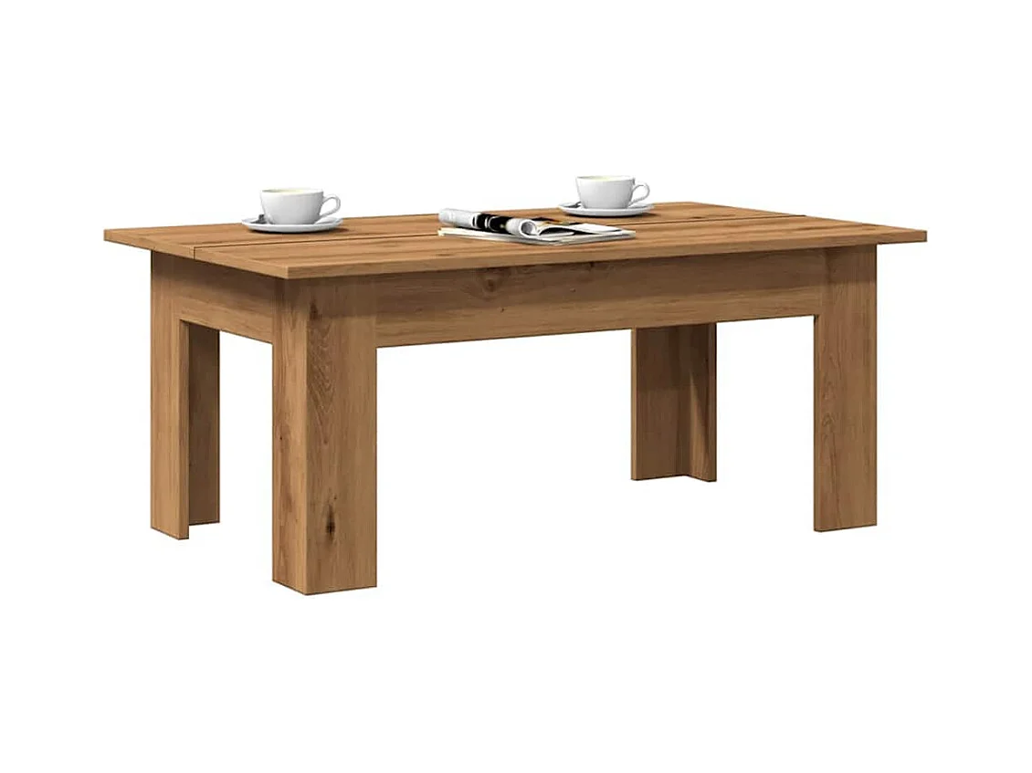 Table basse chêne artisanal 100x60x42 cm bois d'ingénierie