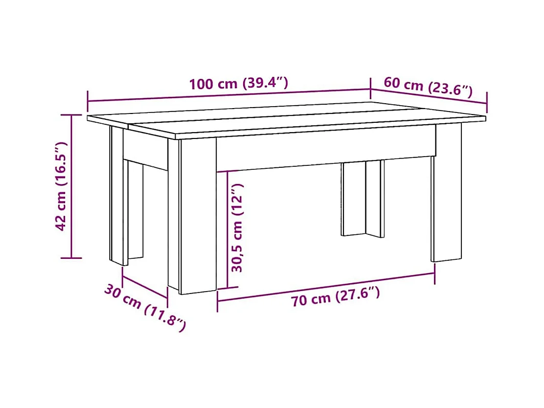 Table basse Chêne fumé 100x60x42 cm Bois d'ingénierie