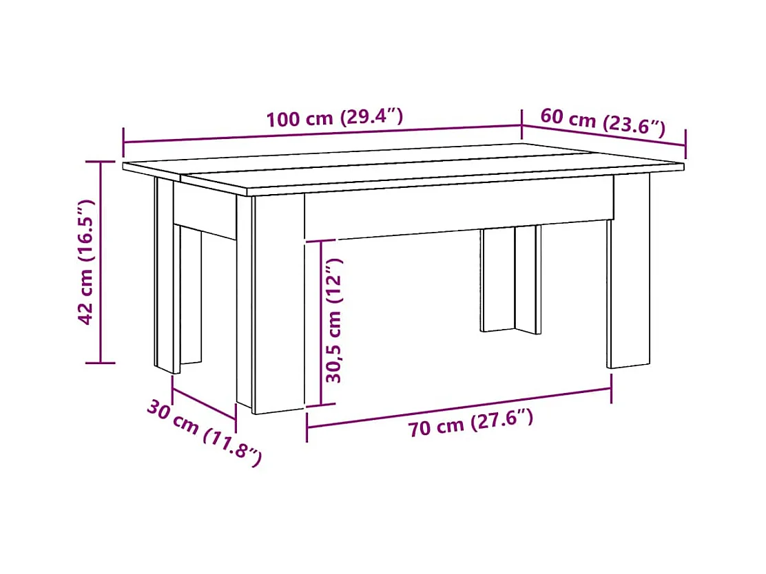 Table basse Chêne sonoma 100x60x42 cm Bois d’ingénierie