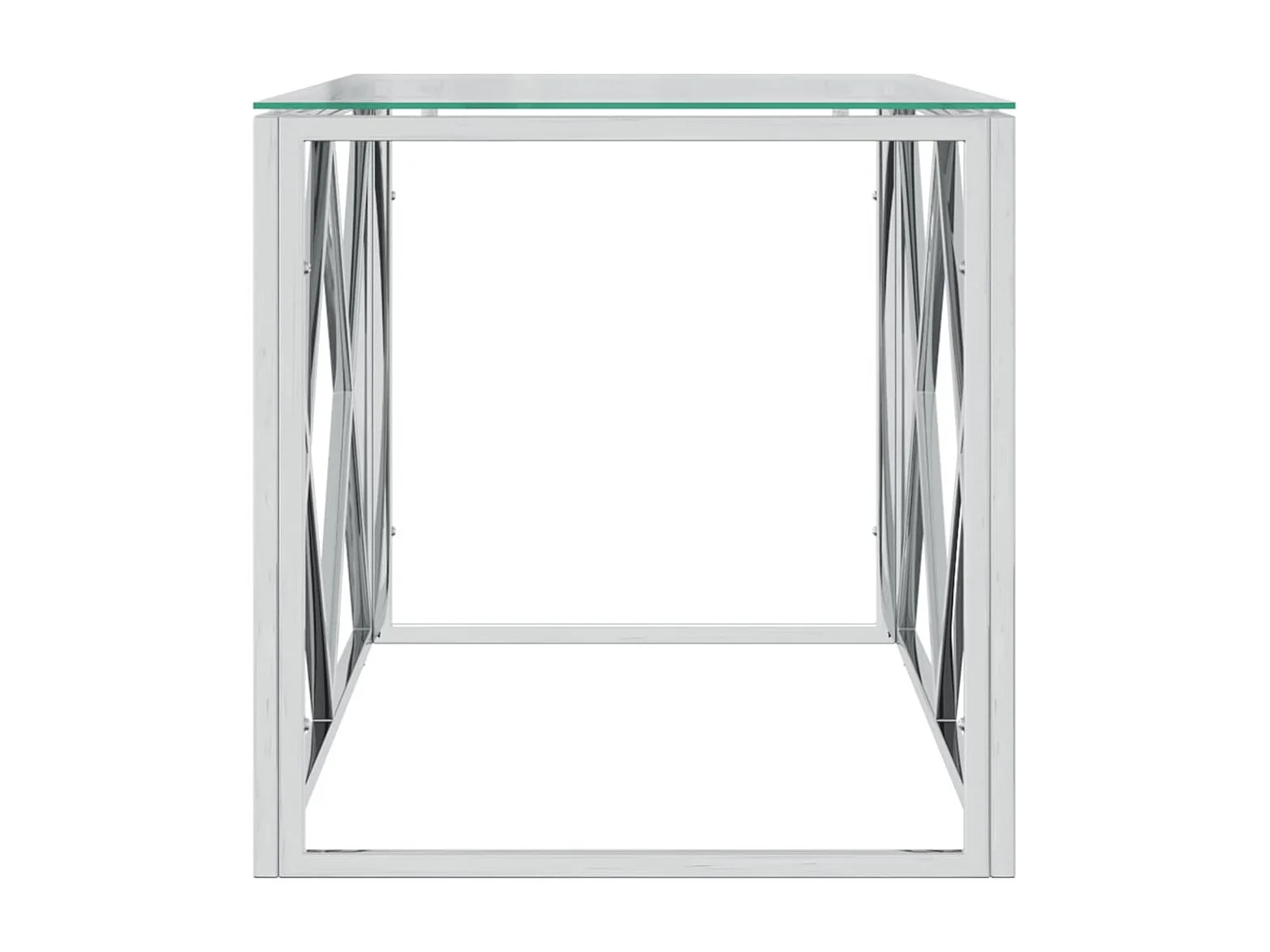 Table basse salon-Table d'appoint argenté acier inoxydable et verre trempé SHL8662