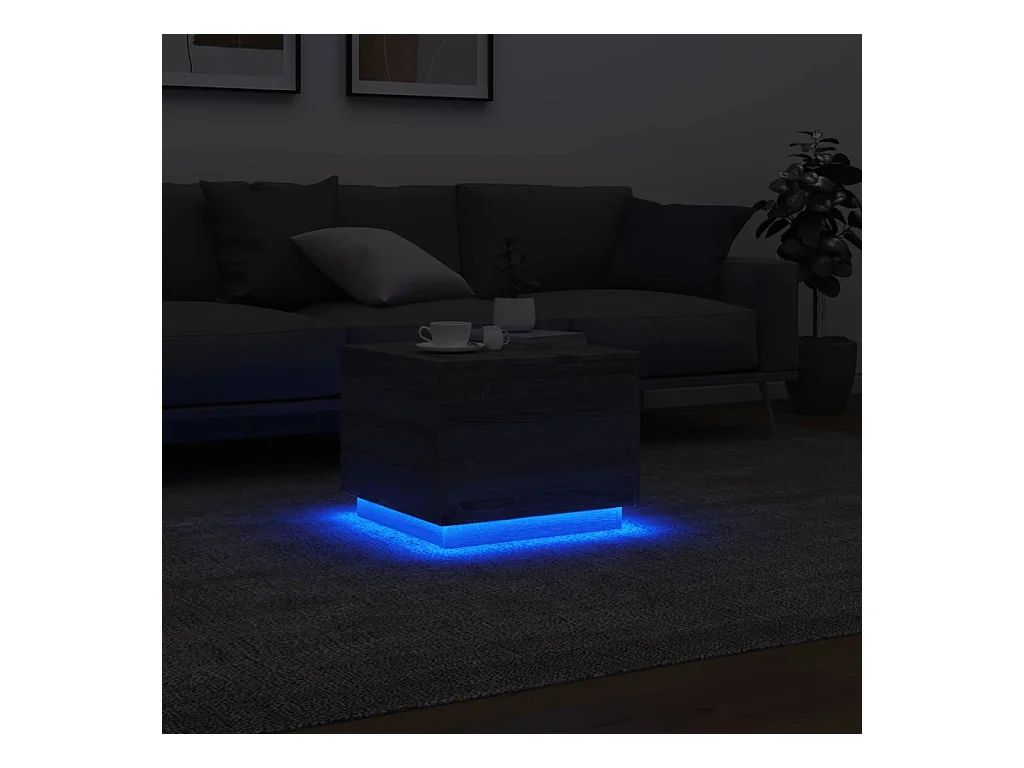 Table basse salon-Table d'appoint avec lumières LED sonoma gris 50x50x40 cm SHL28404