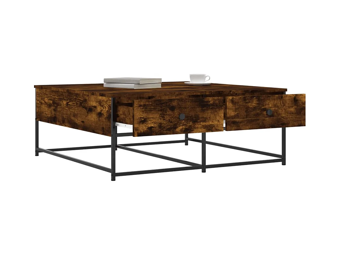 Table basse salon-Table d'appoint chêne fumé 100x99x40 cm bois d'ingénierie SHL37681
