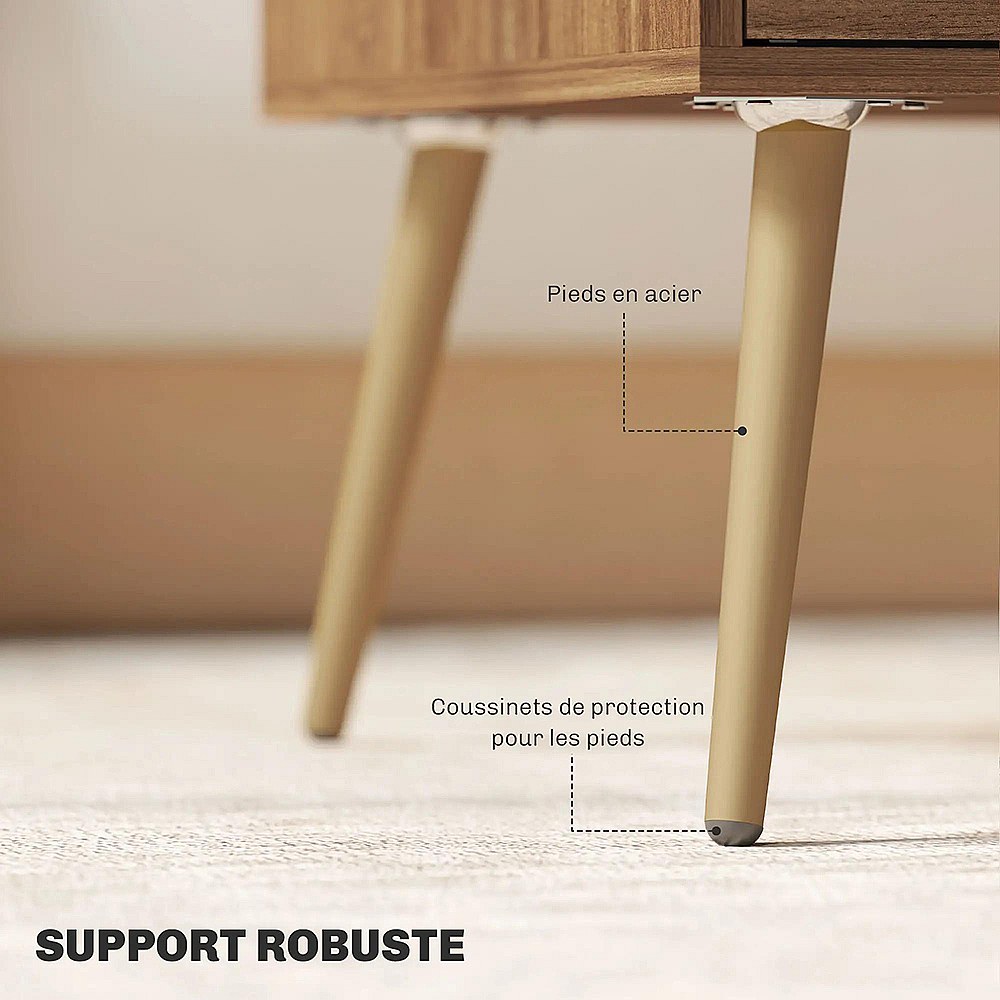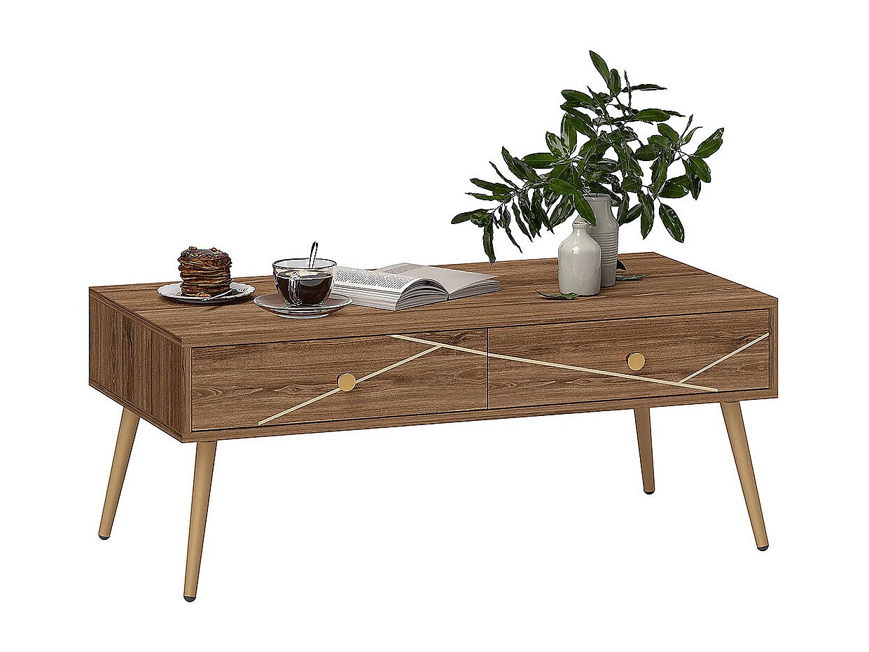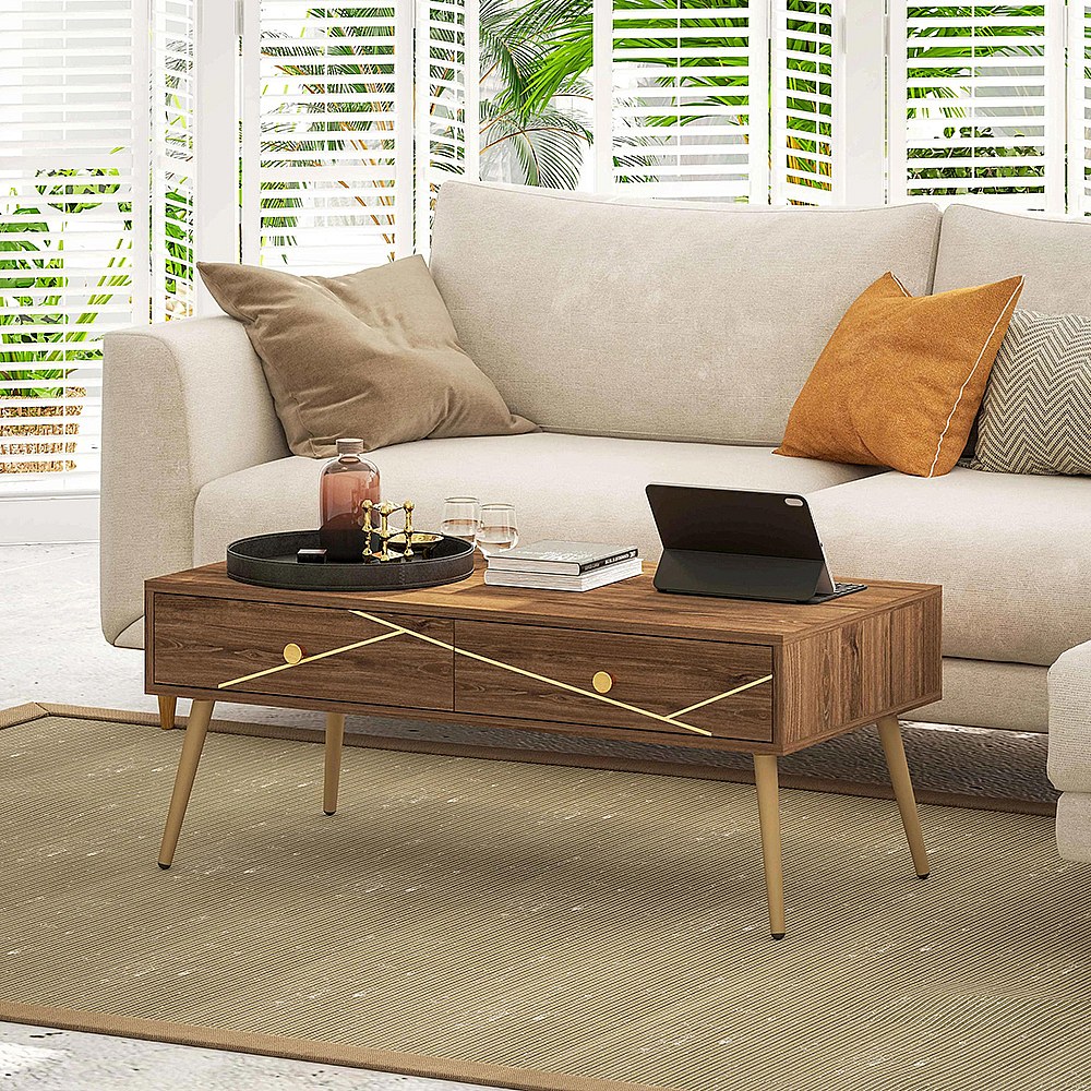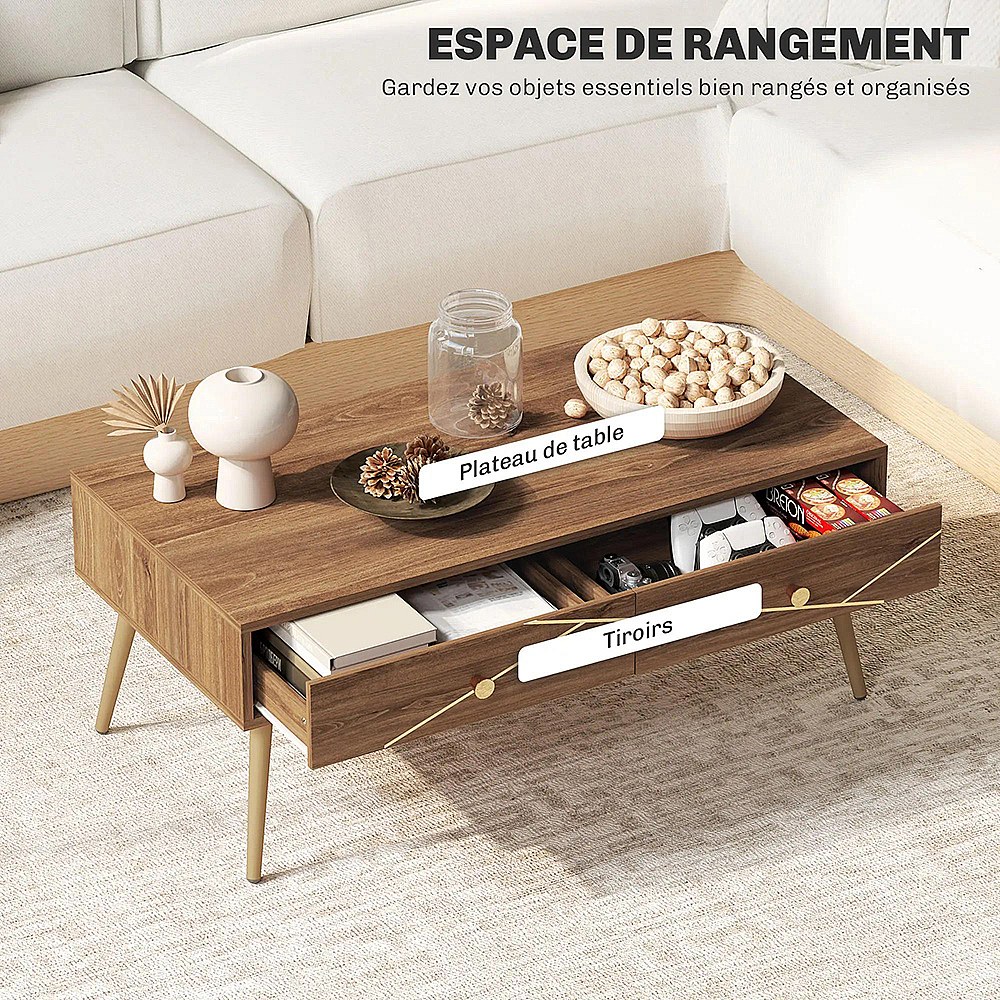 Table basse salon table de salon rectangulaire vaste plateau 2 tiroir pieds fuselés marron