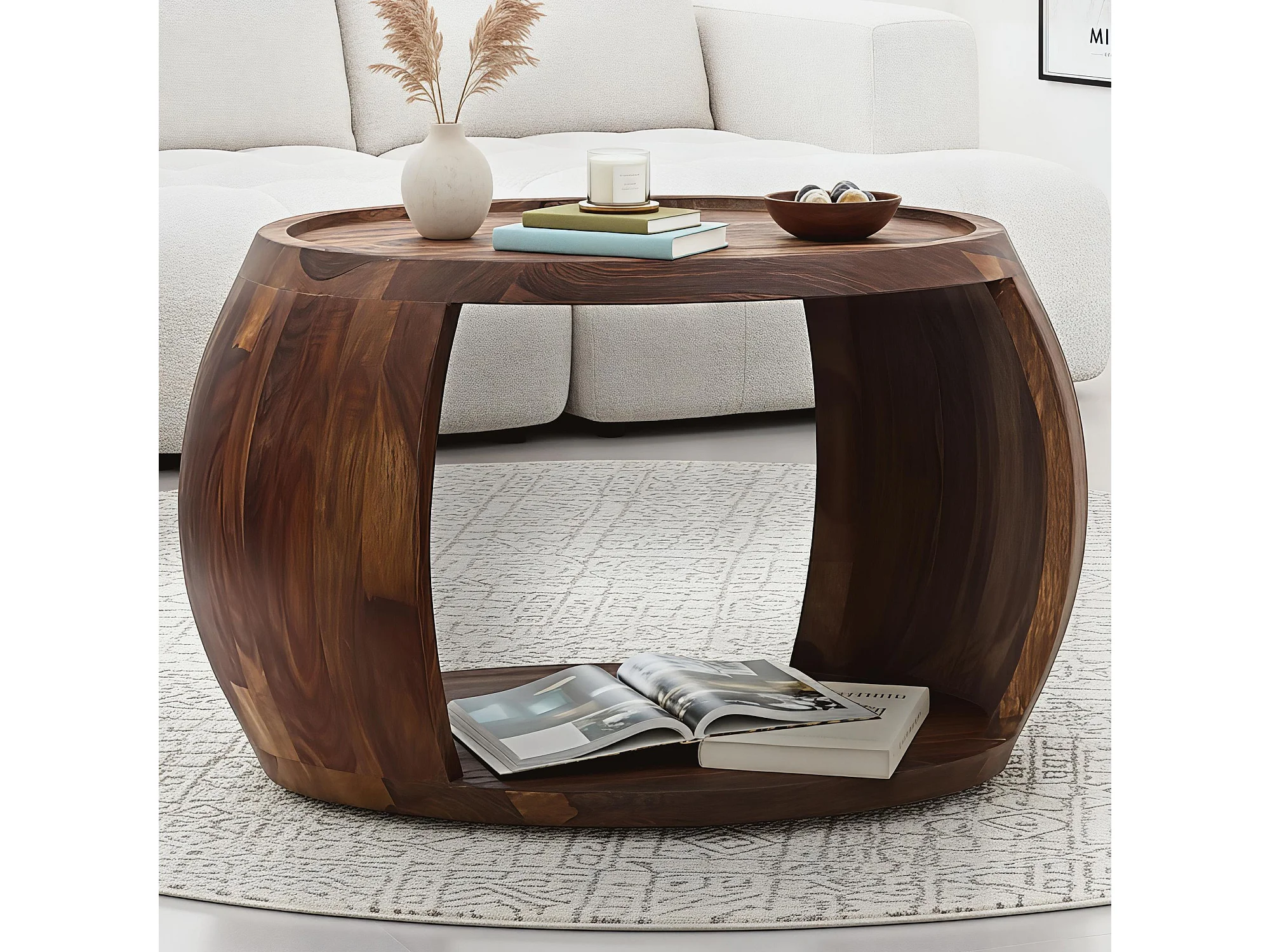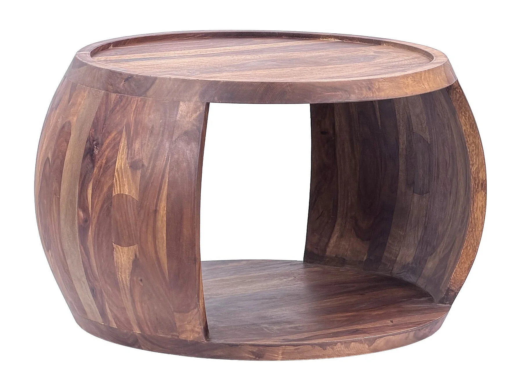 Table Basse Sheesham Bois Massif ronde 60 cm Table Salon Compartiment Rangement