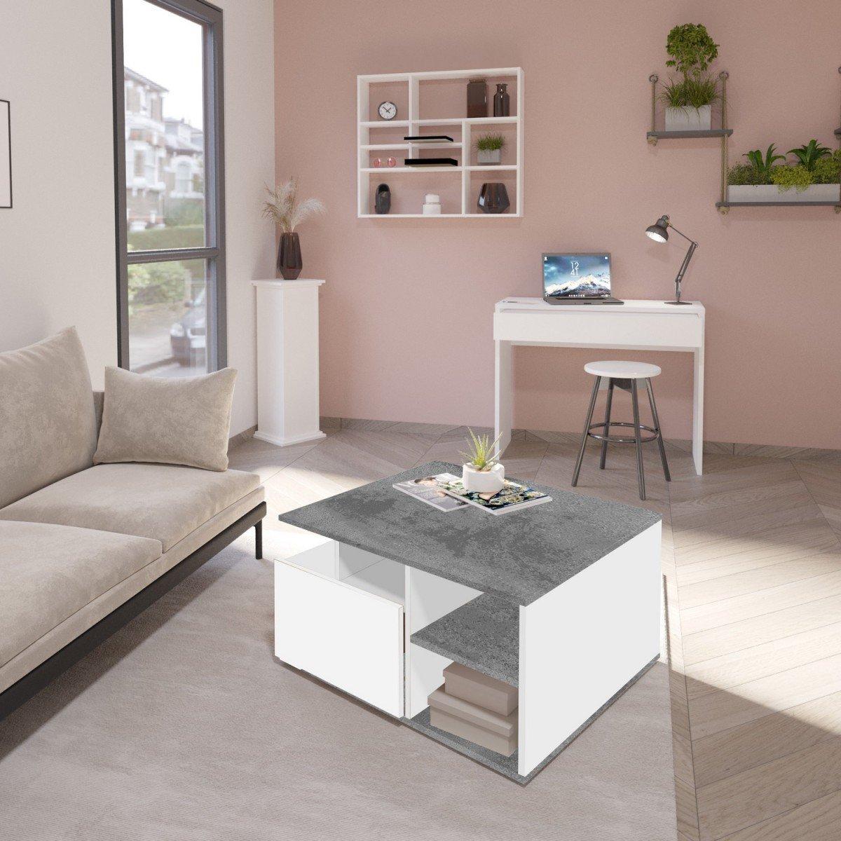 Table Basse sur Roulettes 2 Tiroirs 2 Niches L70 cm - Twin