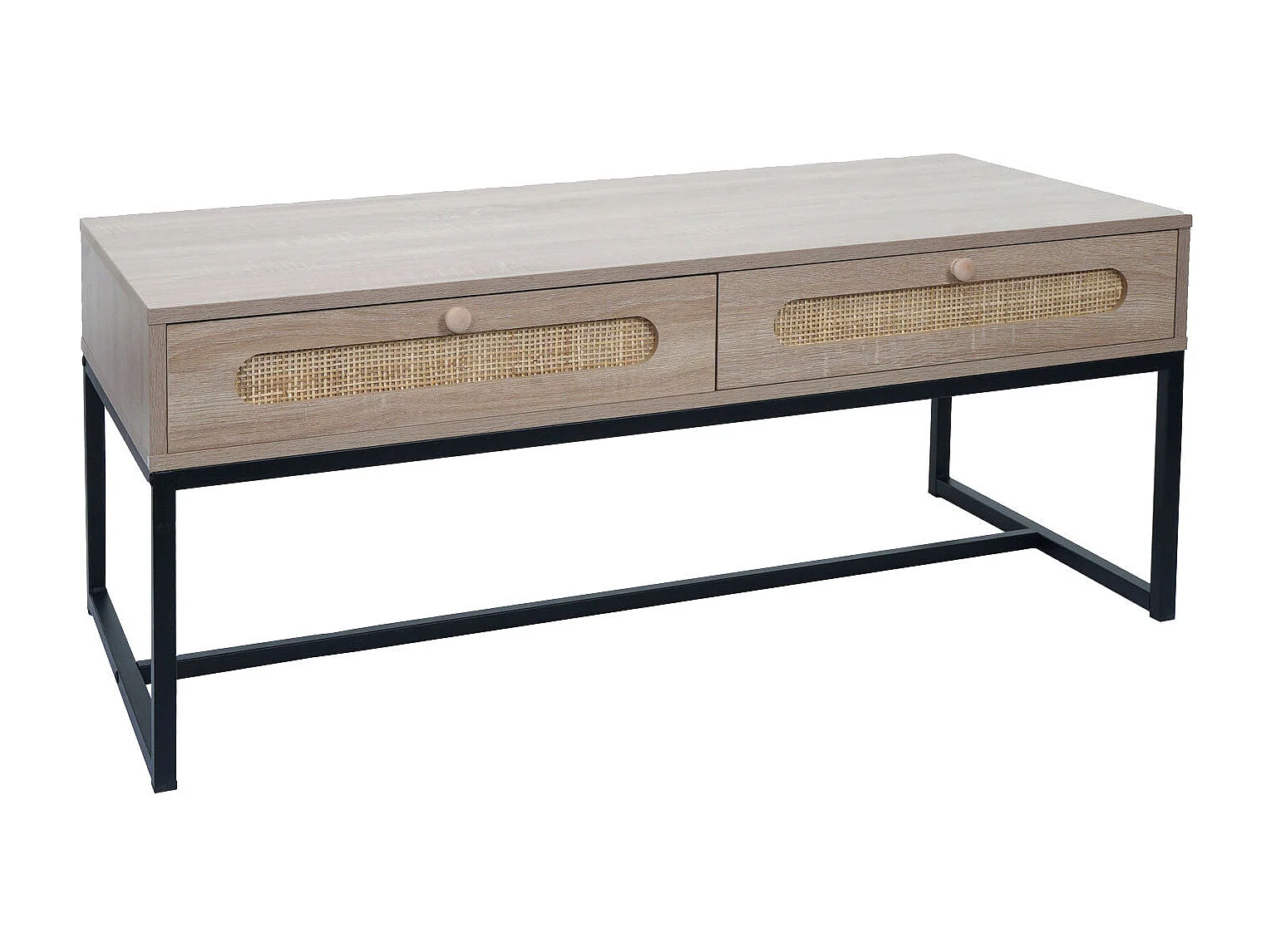 Table Basse 115x22x44 cm en Bois Massif de Sheesham et Métal, Table de Salon Design Moderne, Table