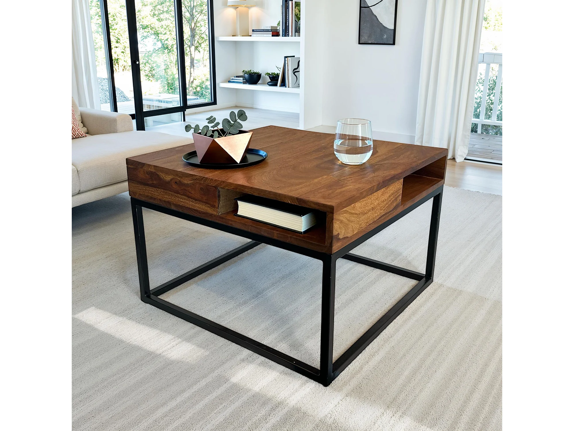 Table basse table de salon carrée en bois d'acacia massif 60 cm industriel