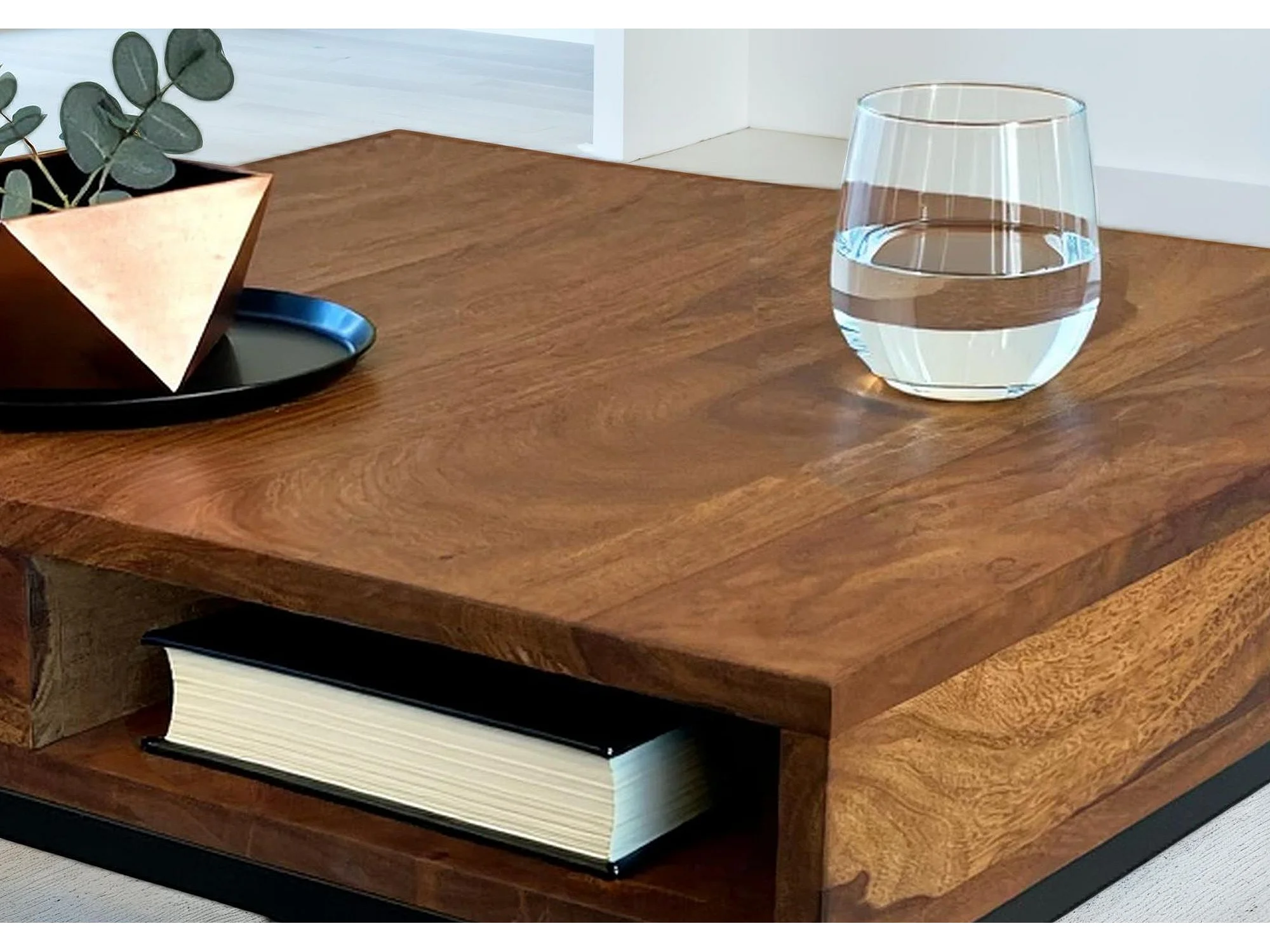 Table Basse de Salon 90 cm Bois Massif Sheesham Carrée avec Étagère