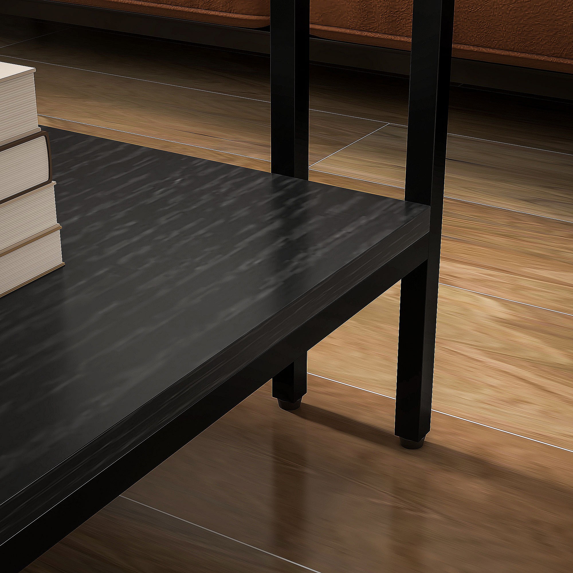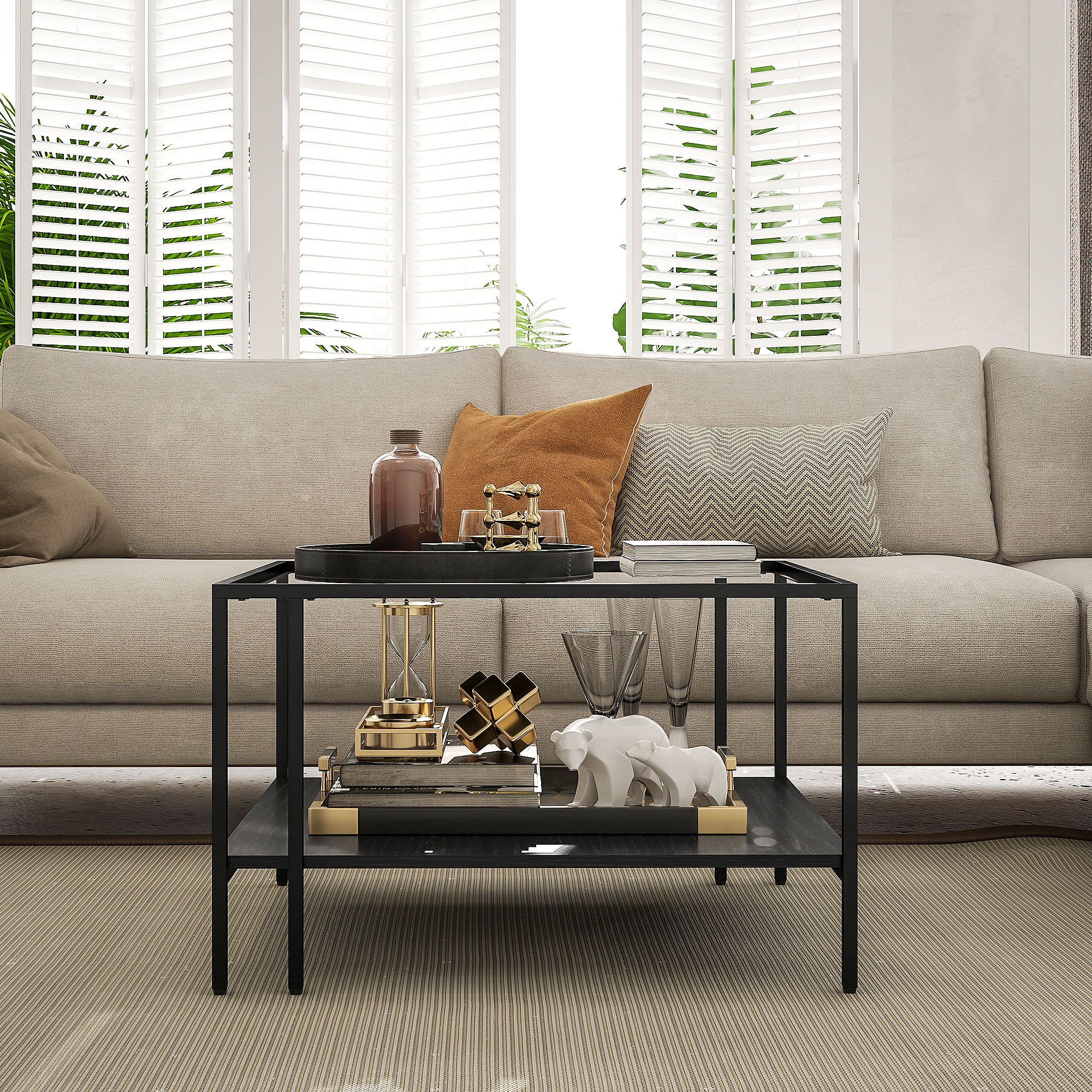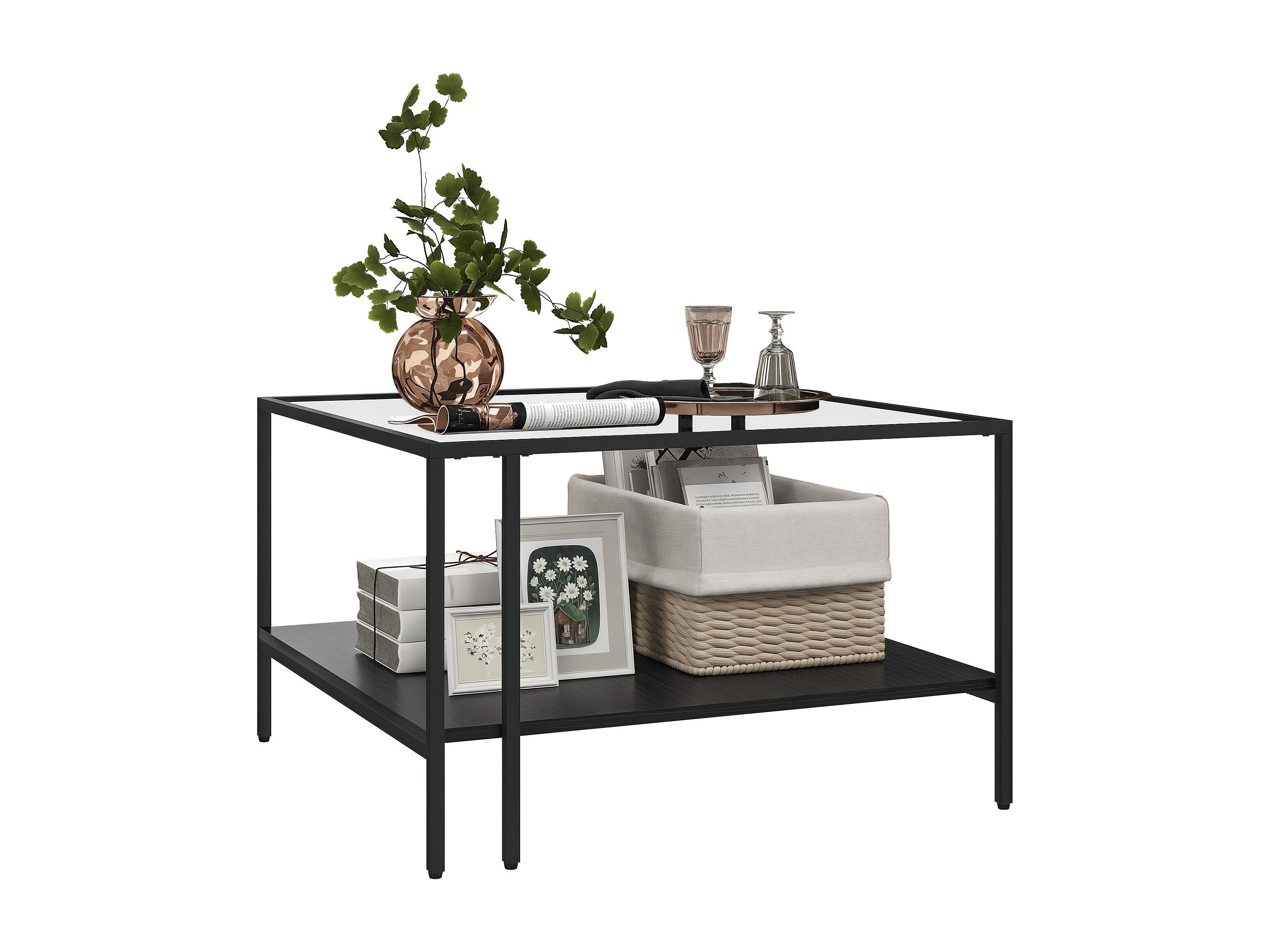 Table basse table de salon carrée 2 niveaux avec plateau en verre trempé, 1 étagère inférieure, design minimaliste, dim. 73l x 73P x 46,5H cm, noir