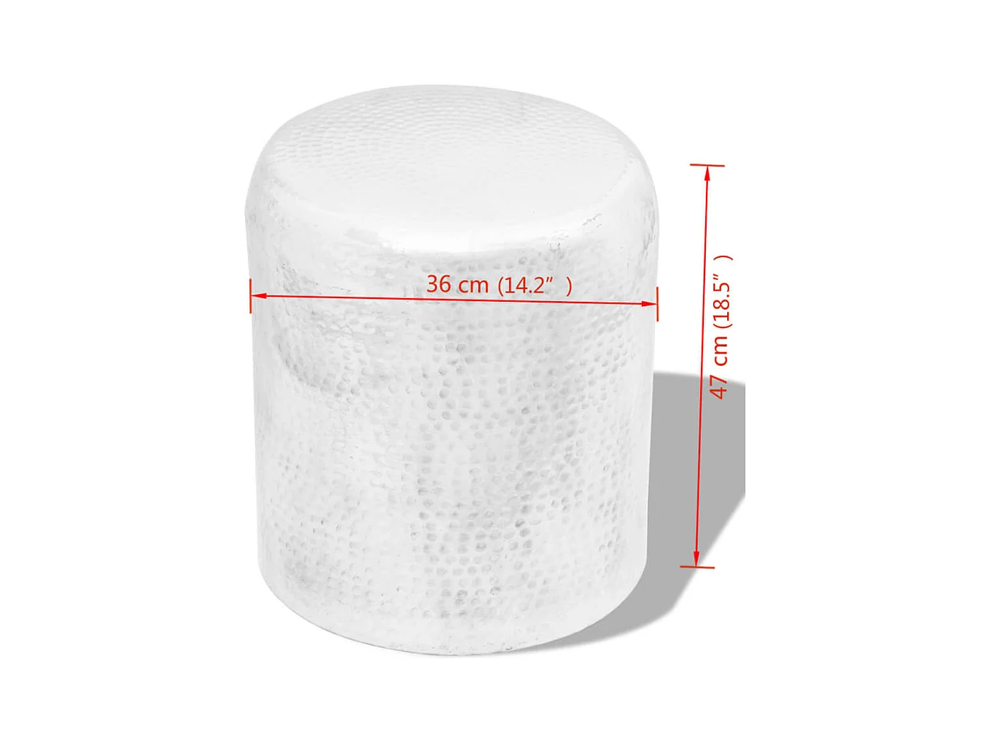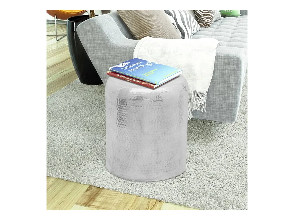 Table basse 62x33 cm ronde argent aluminium martelé artisanal pièce unique orientale support d’appoint café salon canapé meuble lounge déco intérieur