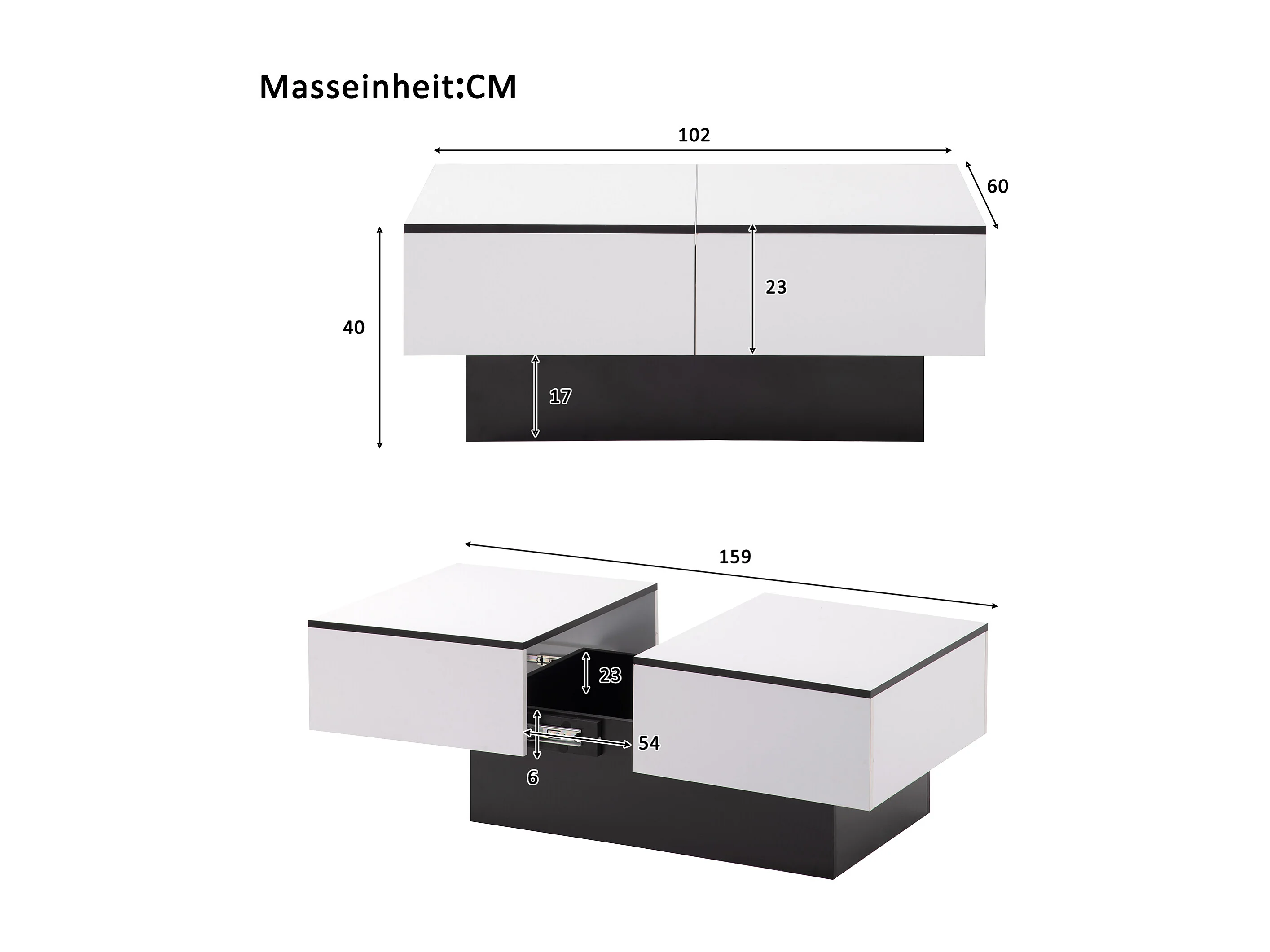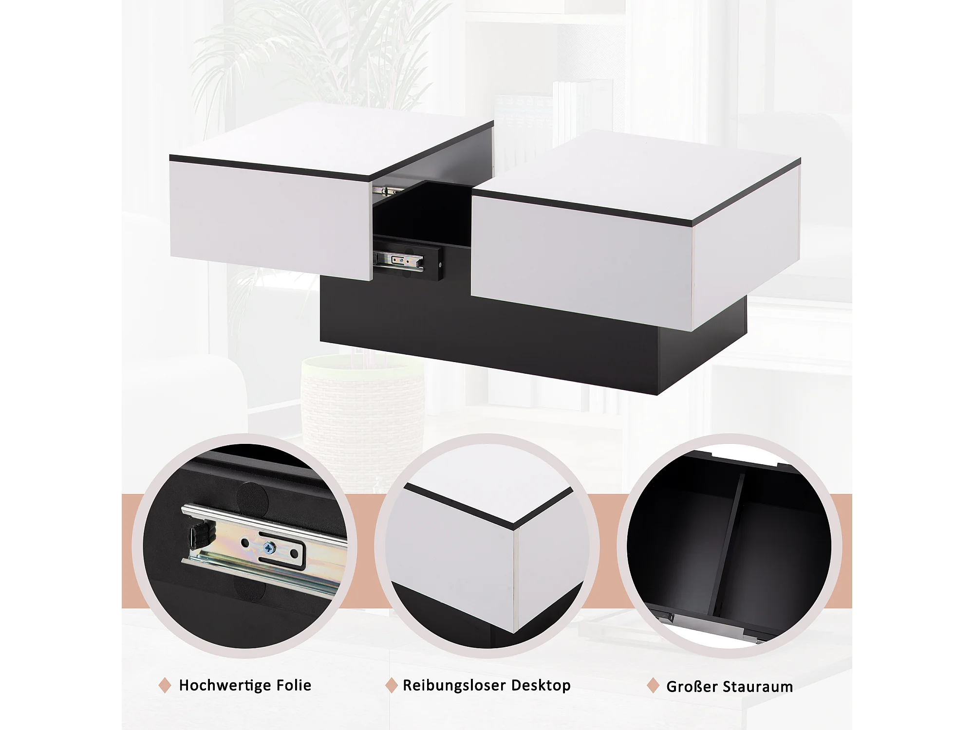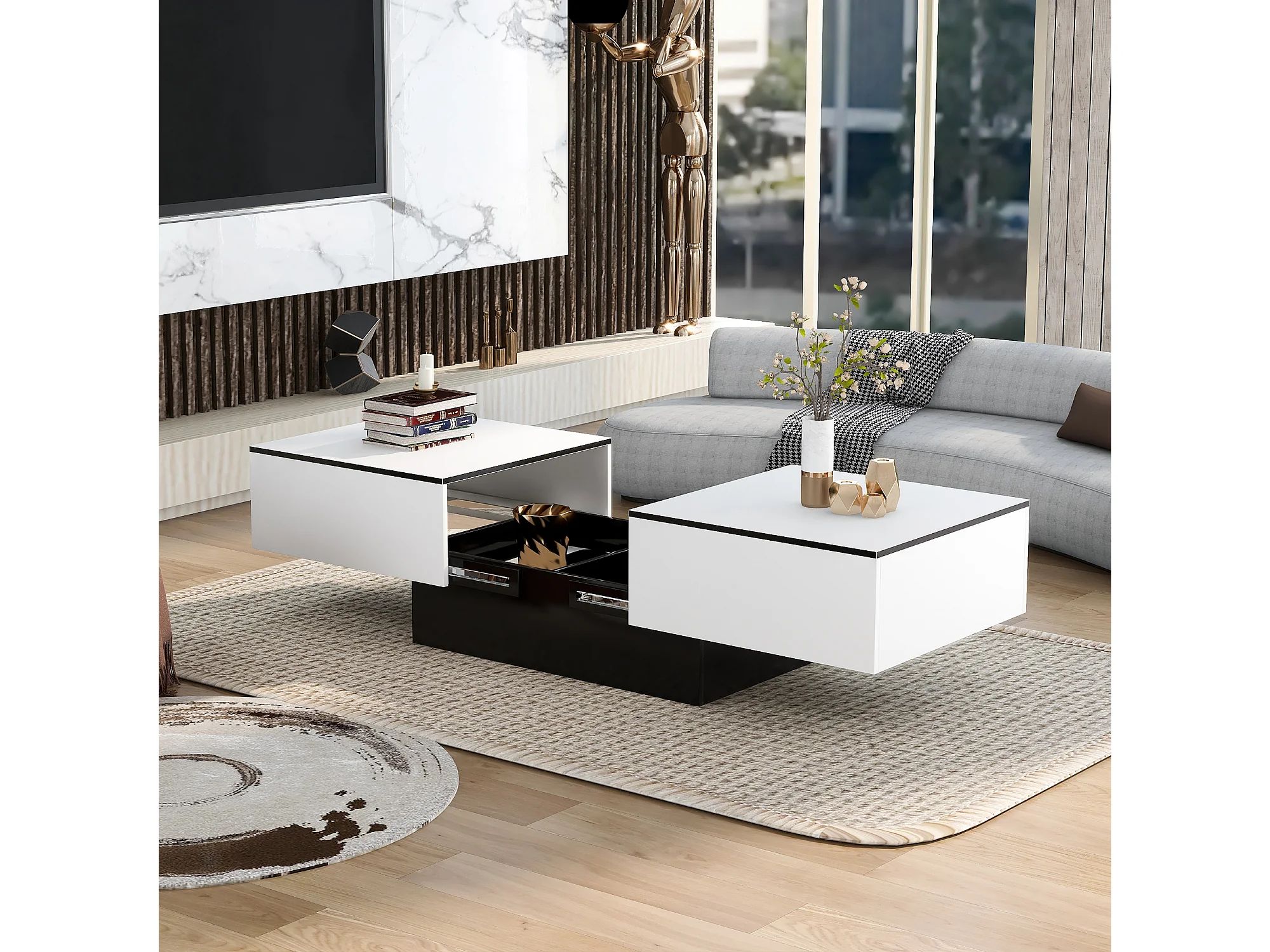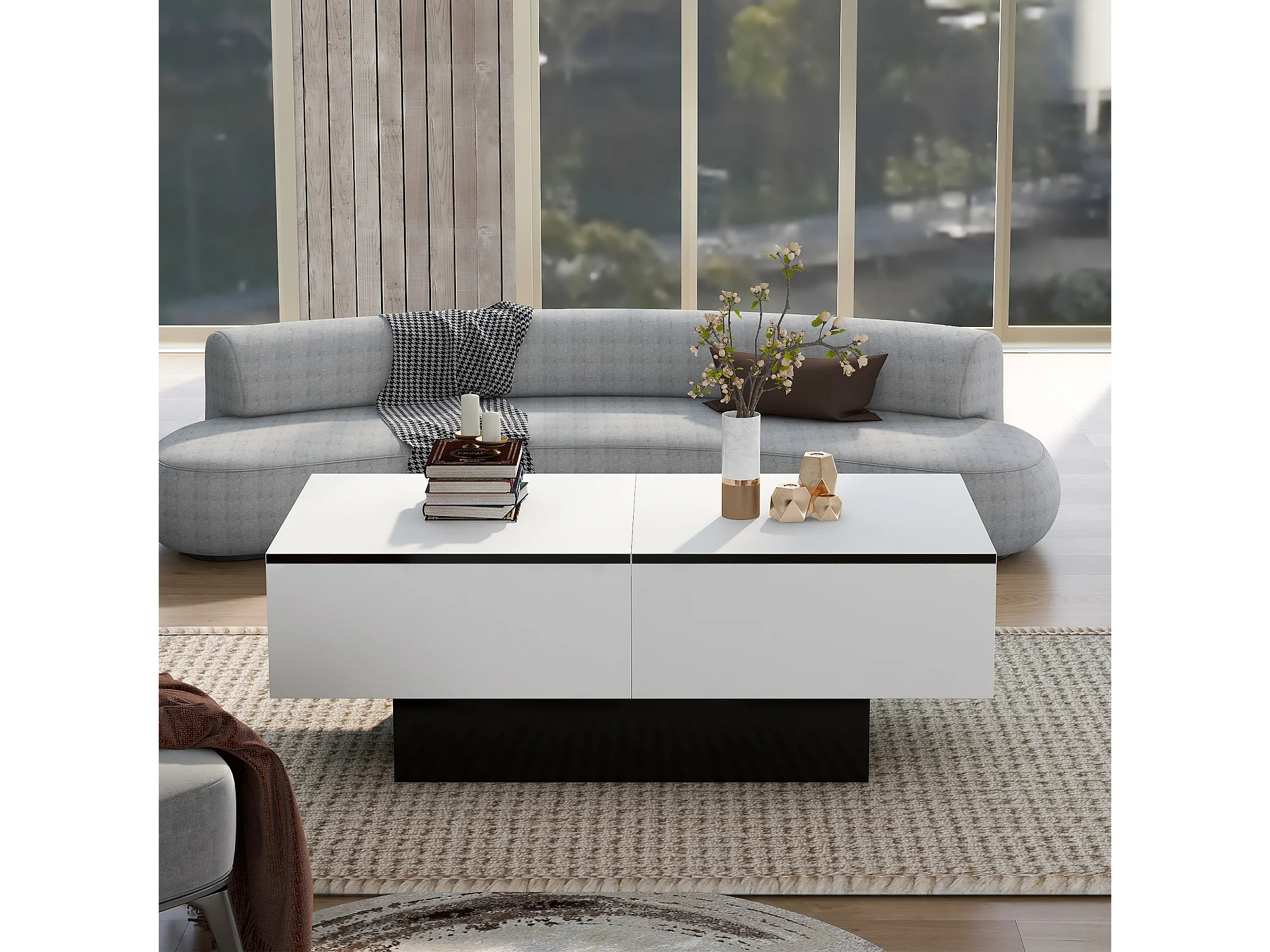 Table Basse Universelle avec Plateau Extensible et Rangement, Design Moderne, Finition Haute Brillance - Blanc