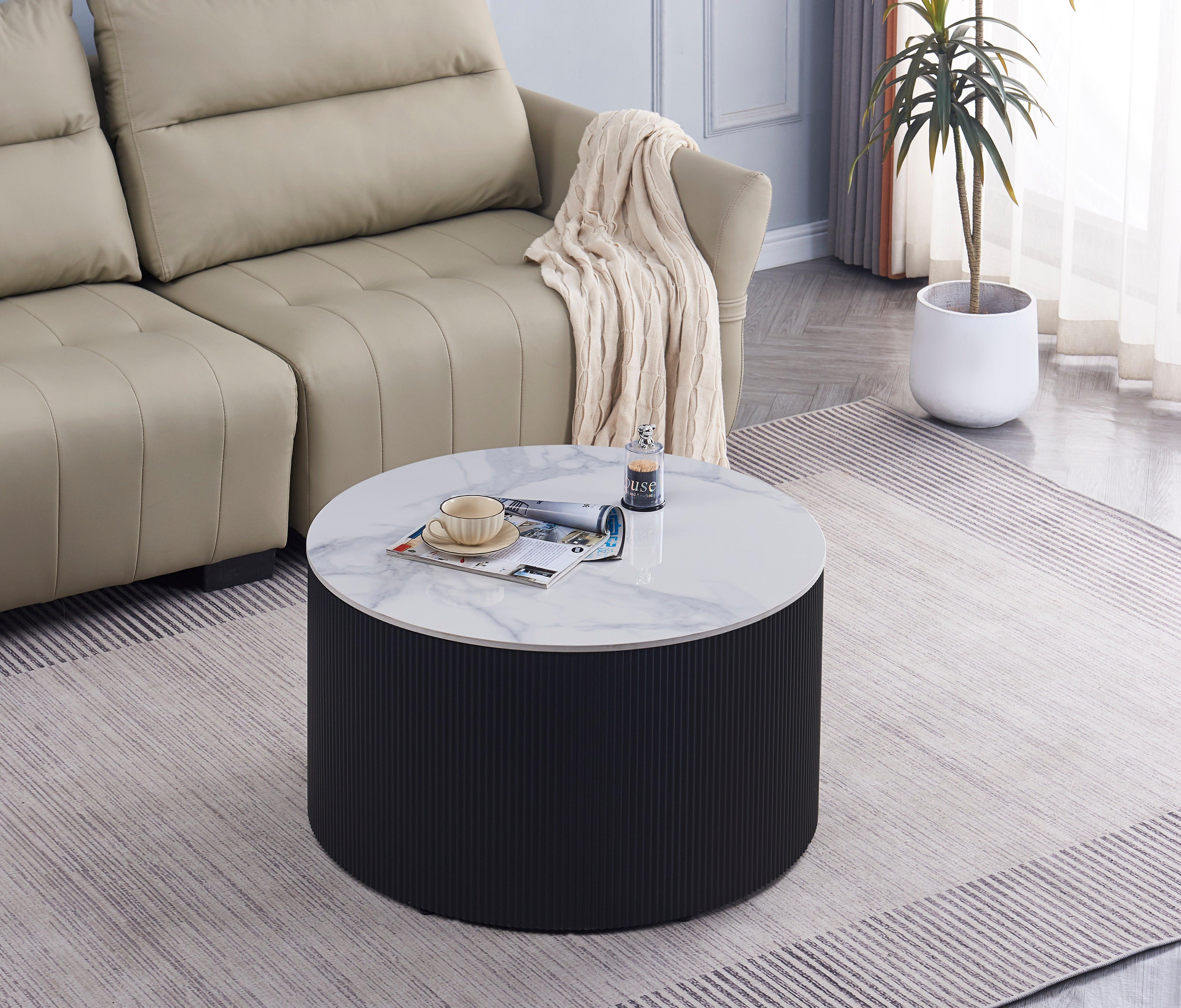 Table Basse VALMY – Pieds Noirs & Céramique Marbre – 90x45 cm