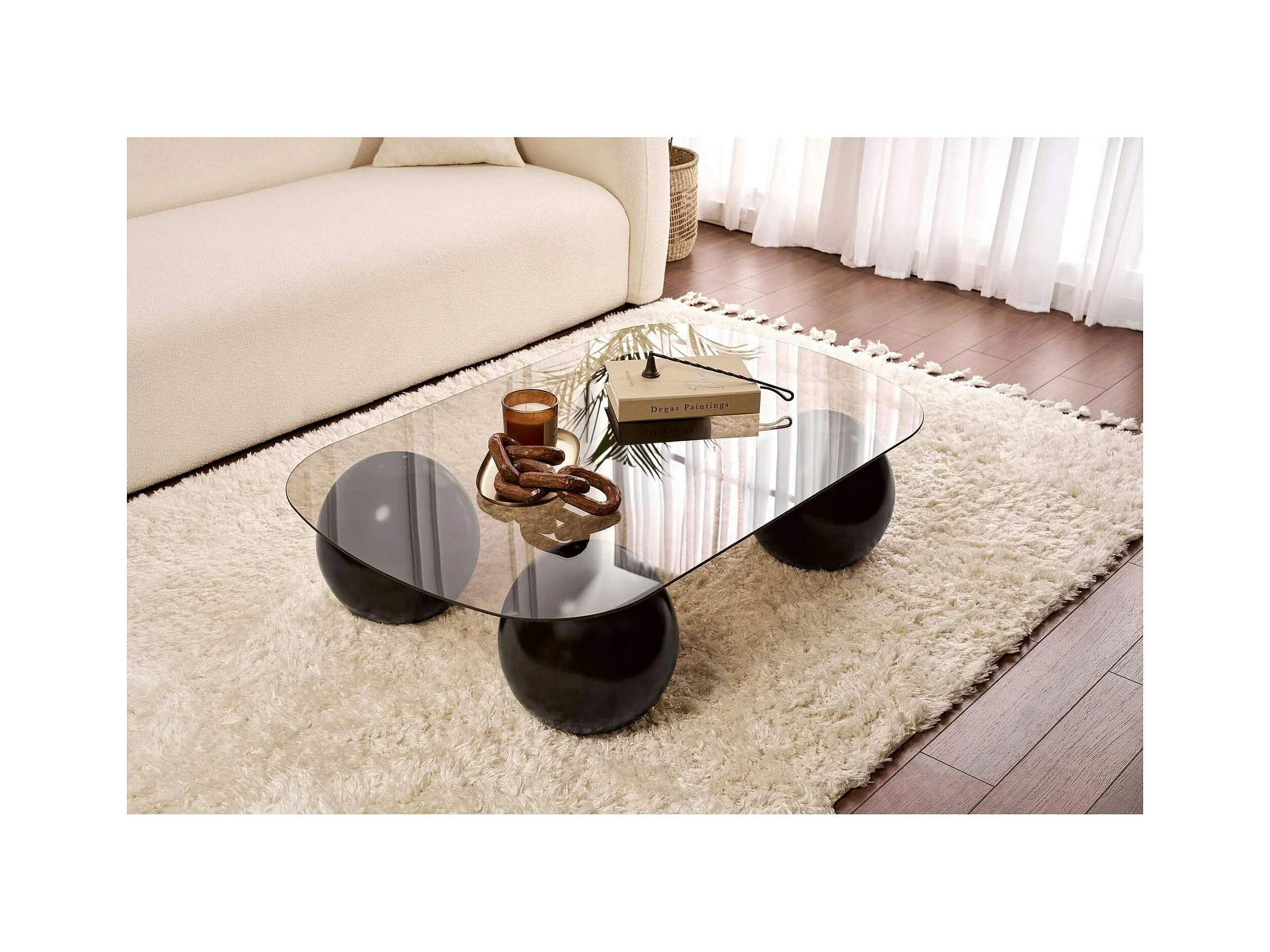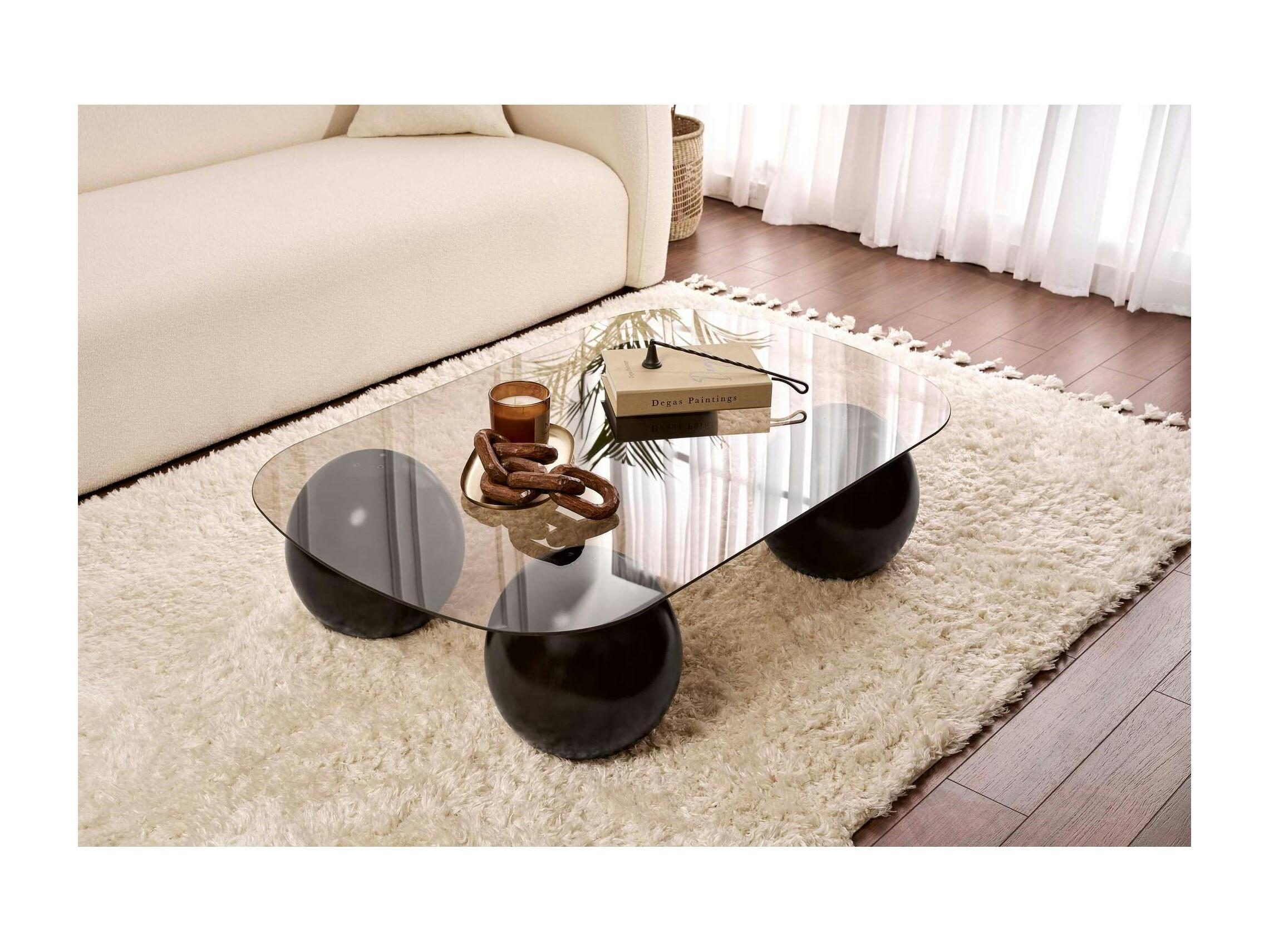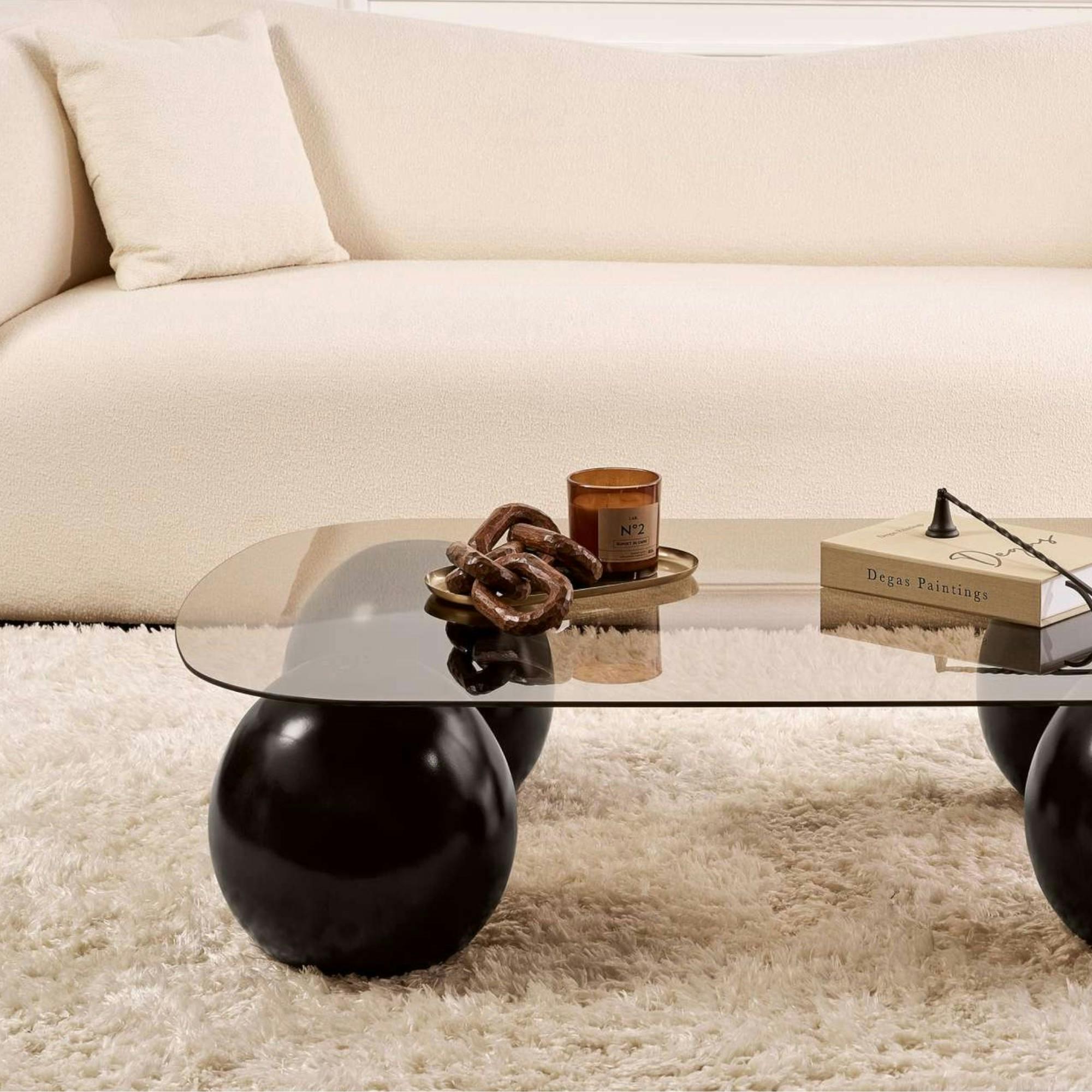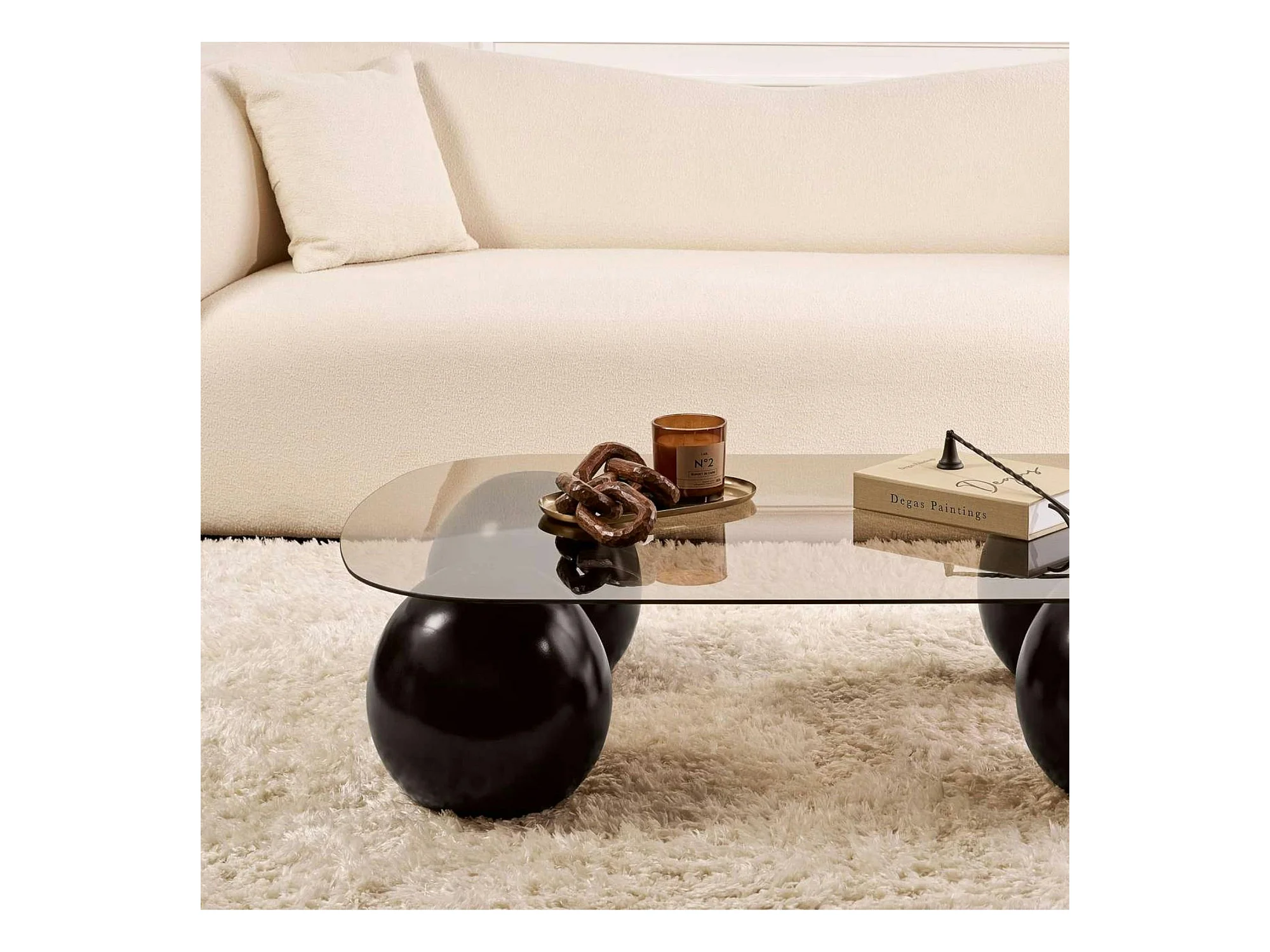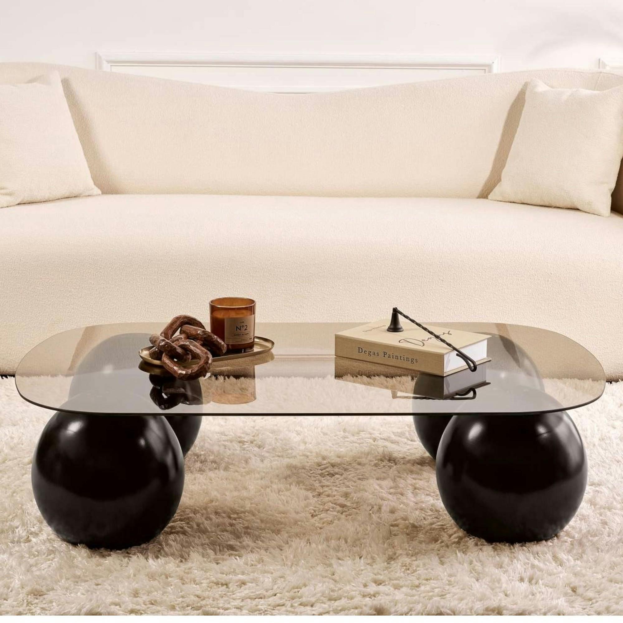 Table basse verre ambré bords arrondis - 4 pieds noirs KOCHI