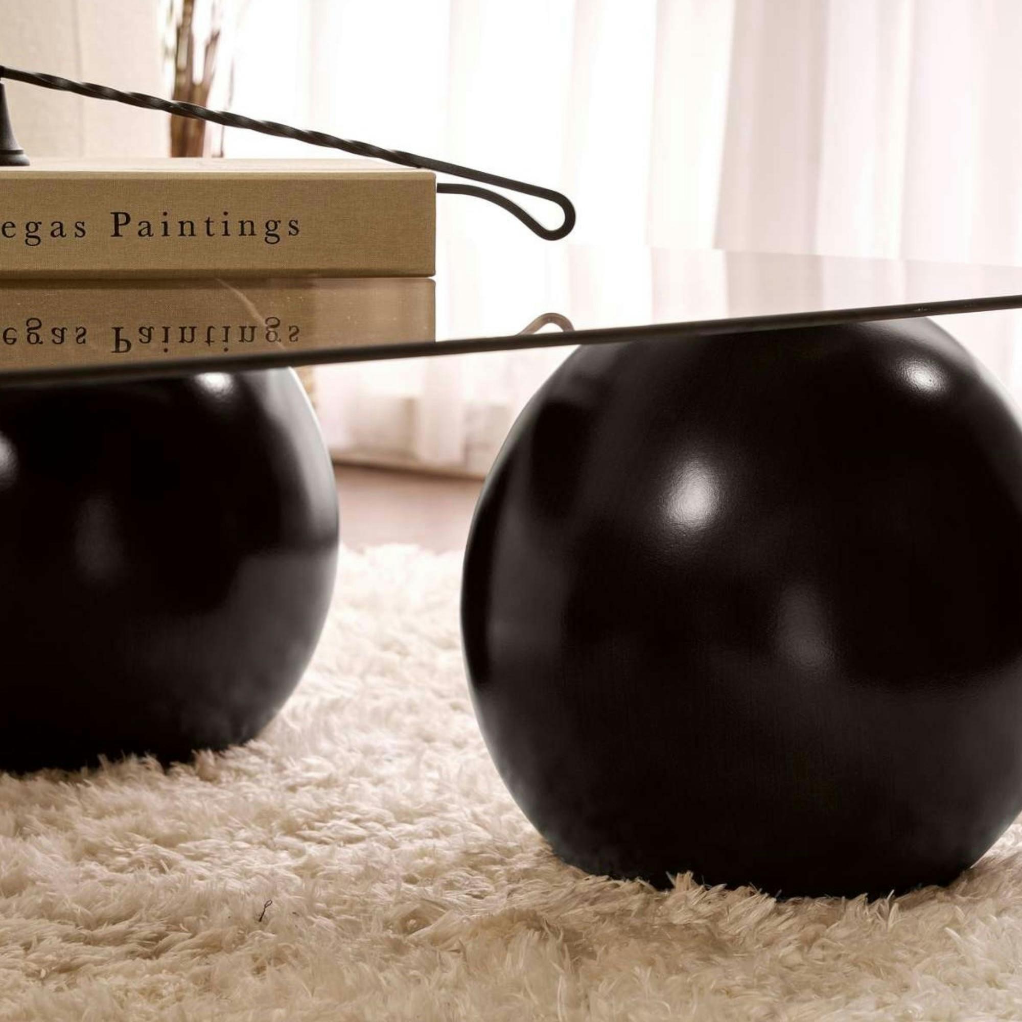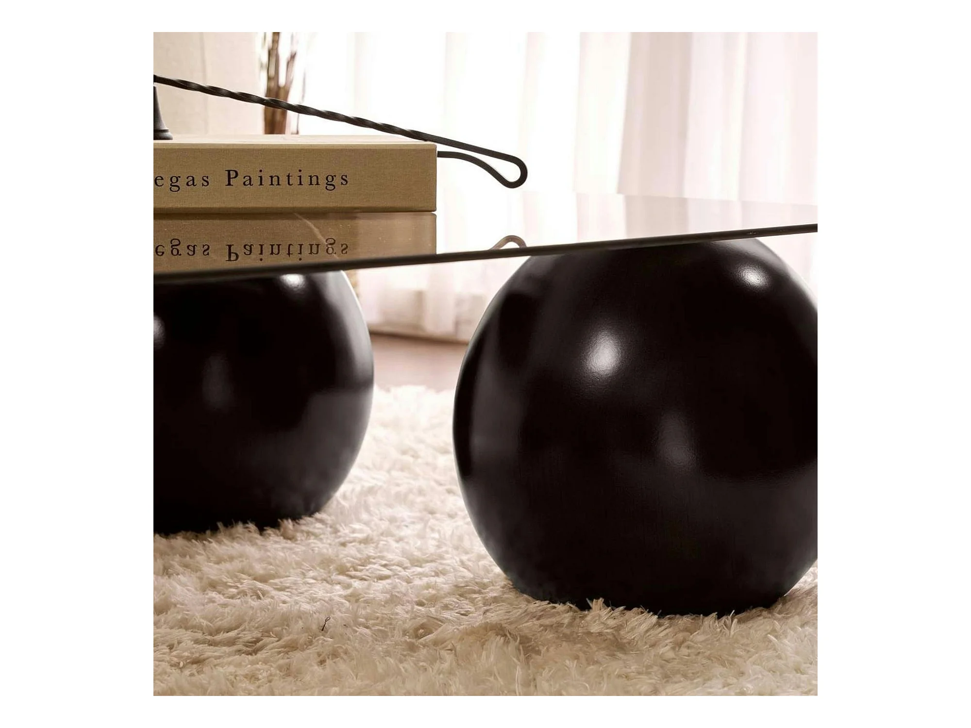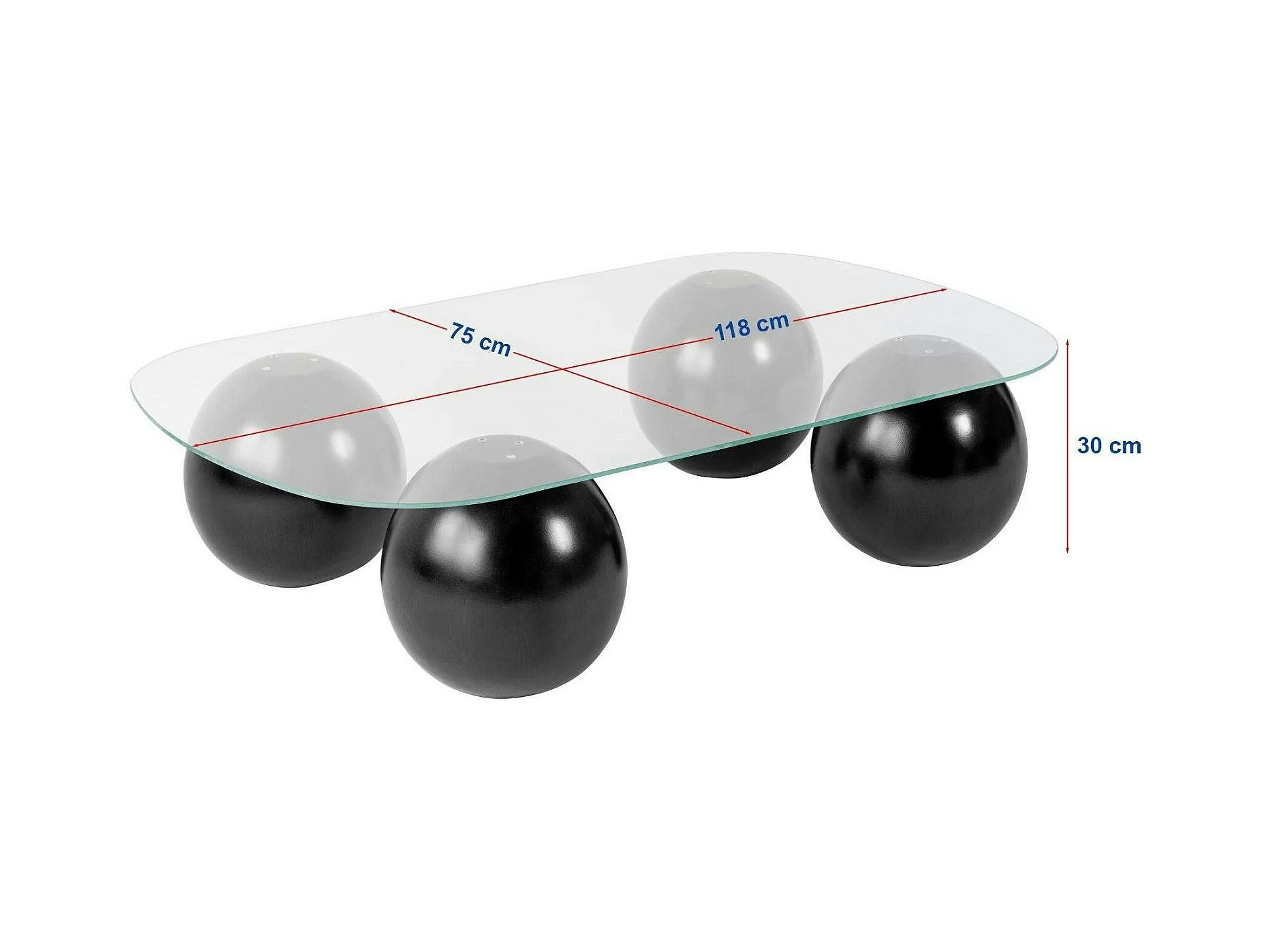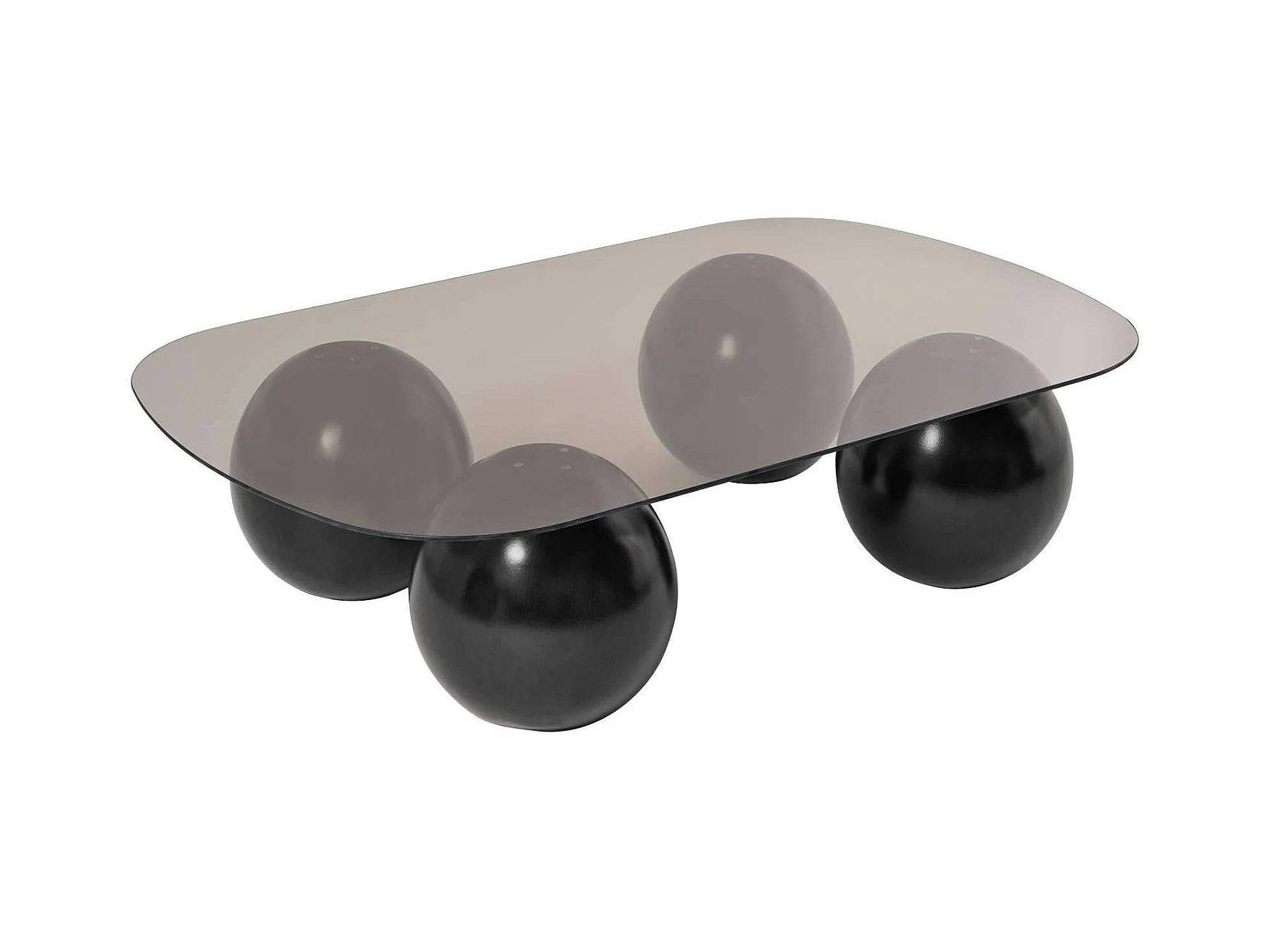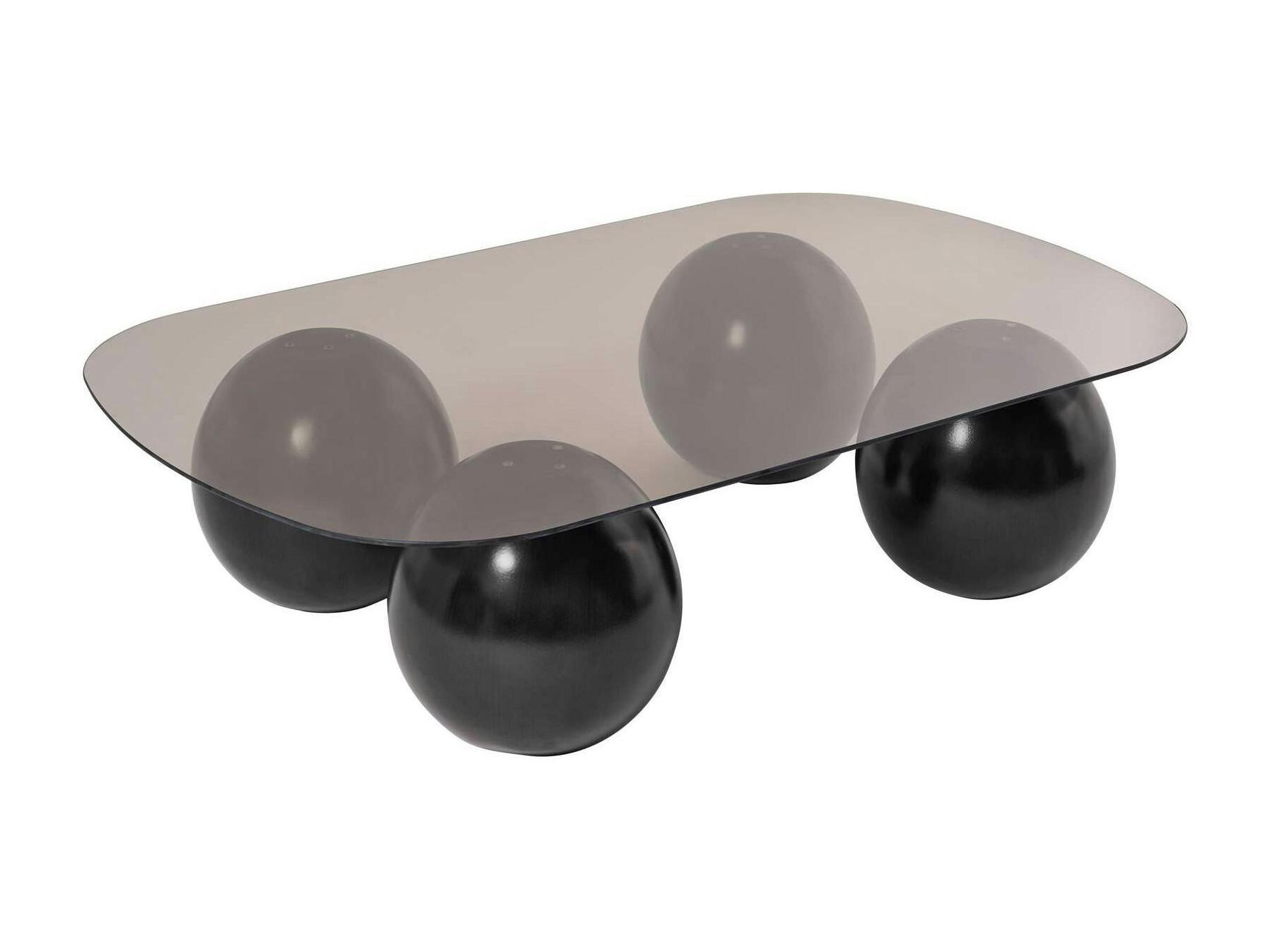 Table basse verre ambré bords arrondis - 4 pieds noirs KOCHI