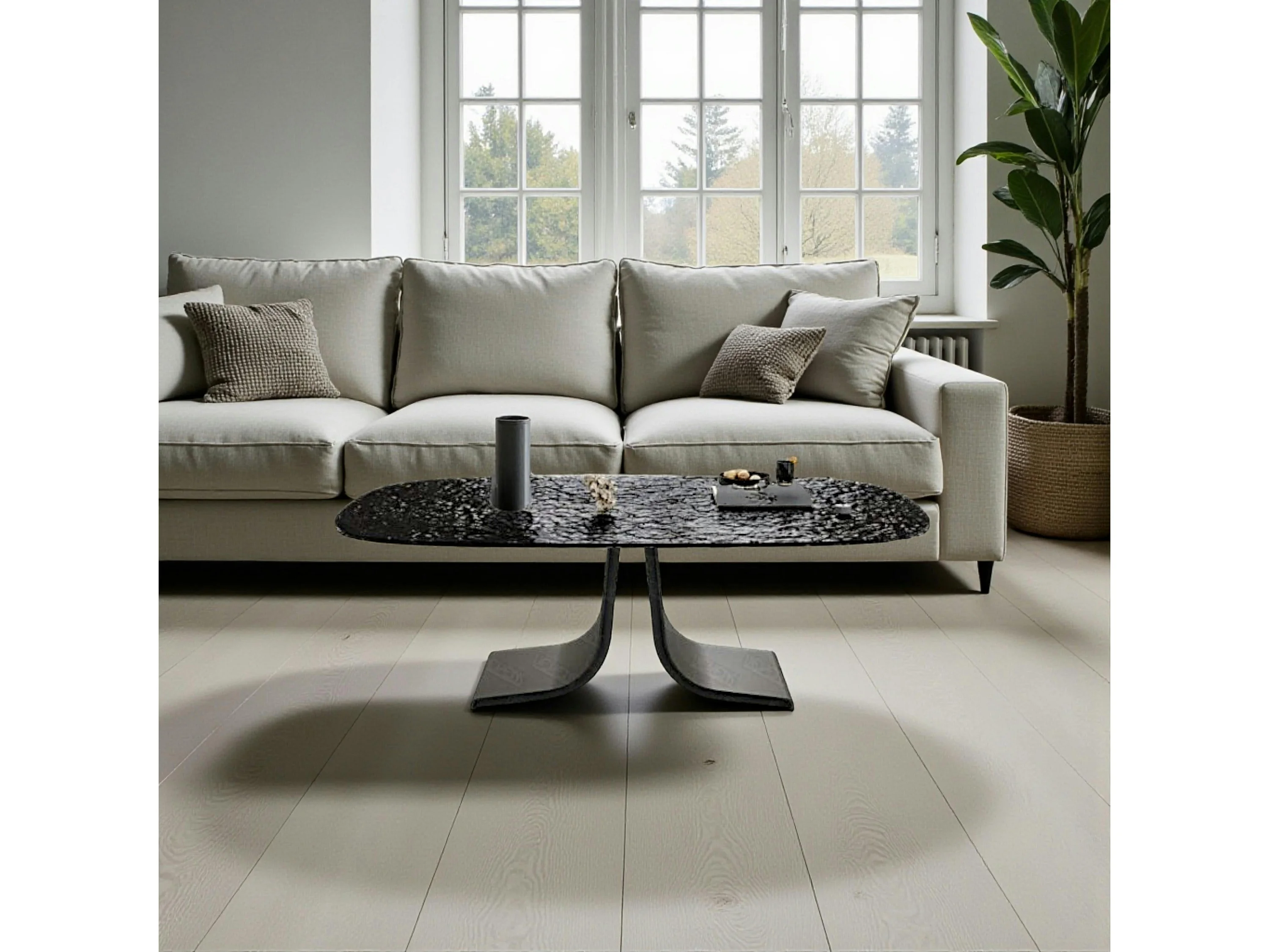 Table basse verre ondulé noir, pied ouvert LIGURIE