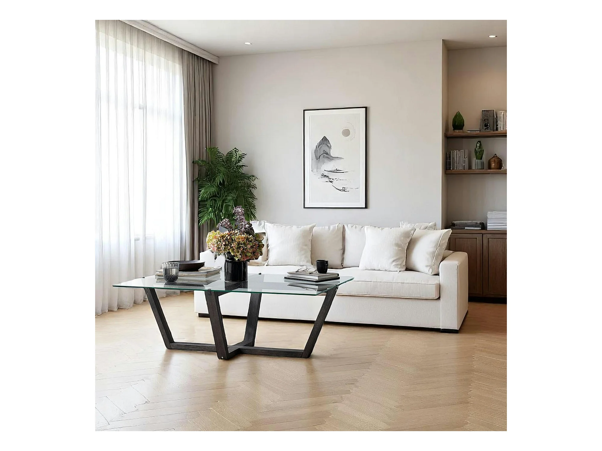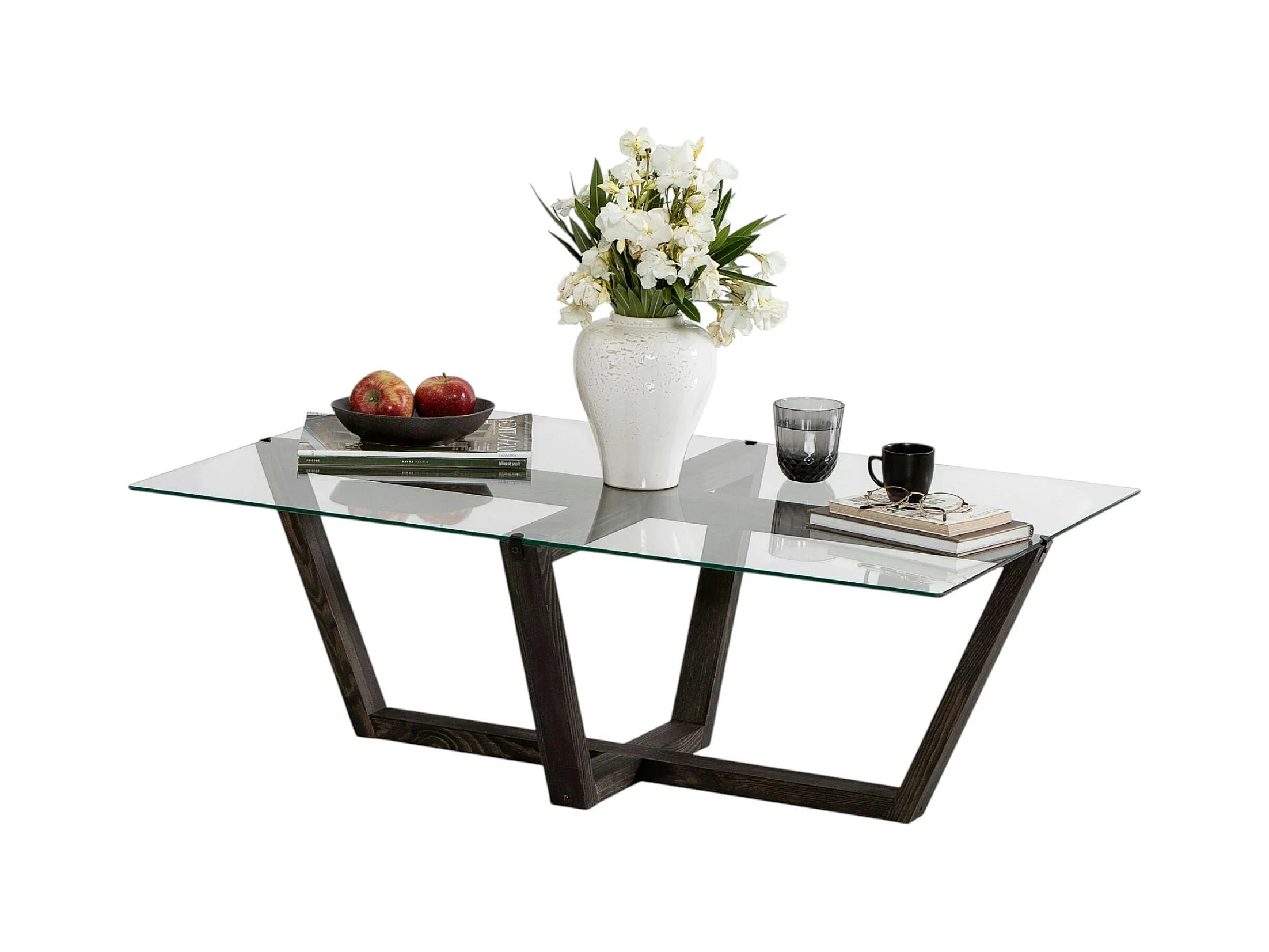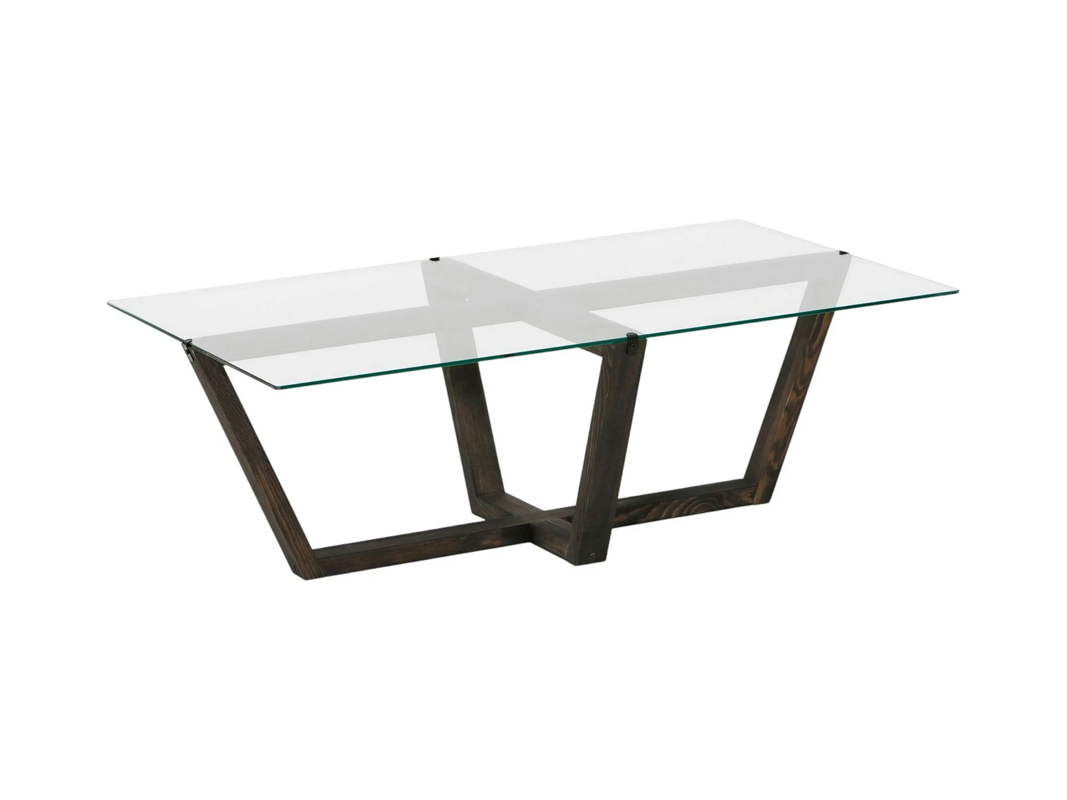 Table basse verre trempé - pied croisé en bois gris foncé LHASA
