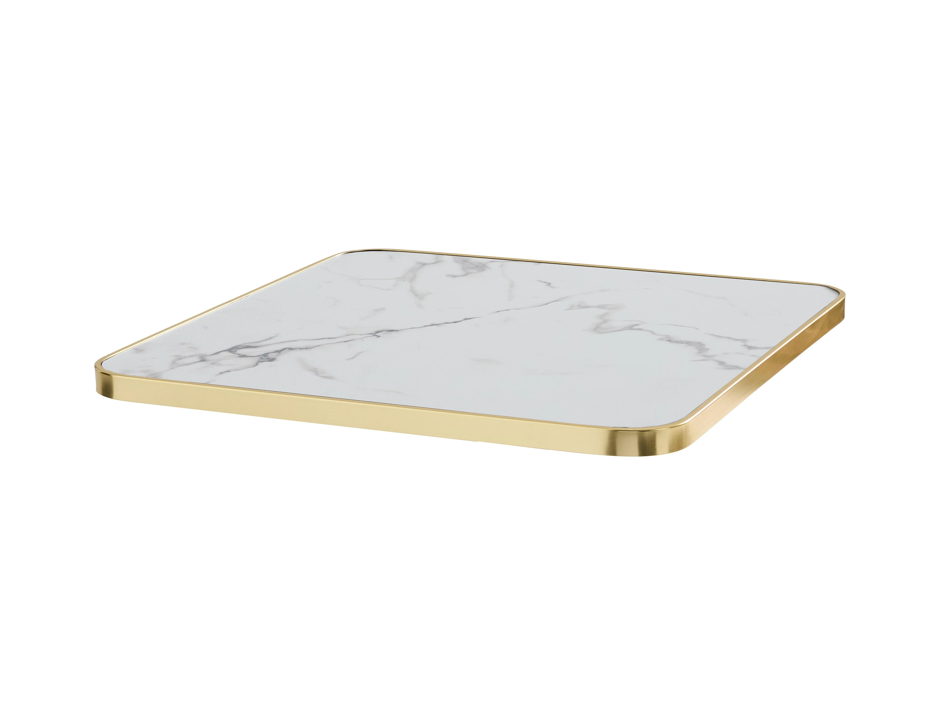 Table à manger 60 x 60 cm pied doré et revêtement marbre blanc/argent