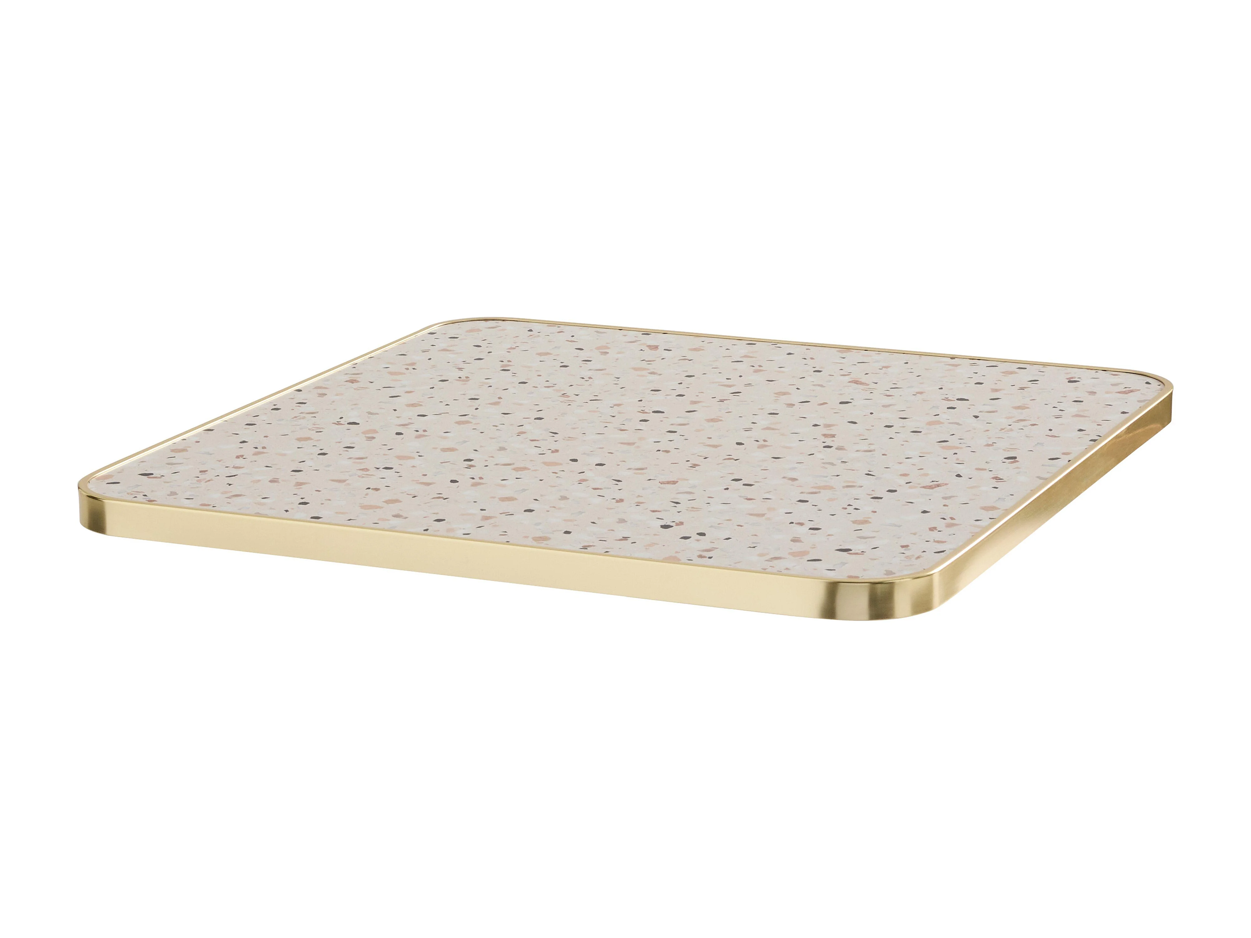 Table à manger 60 x 60 cm pied doré et revêtement terrazzo/doré