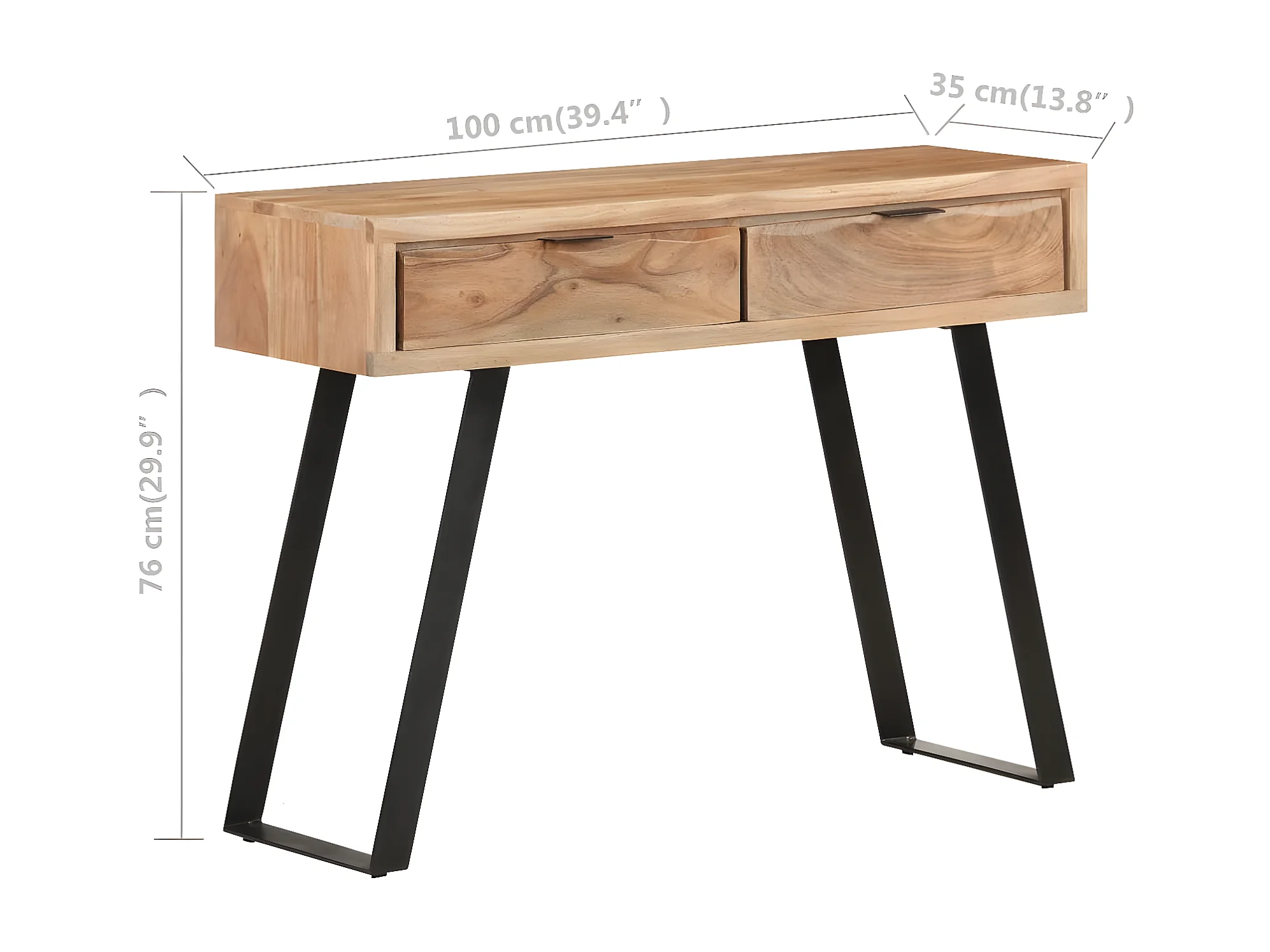 Table console 100x35x76 Bois d'acacia avec bord naturel