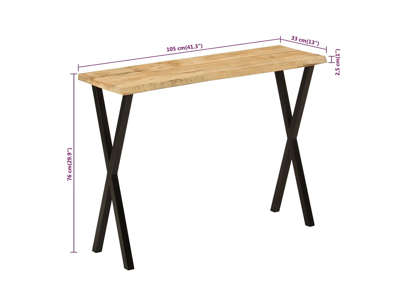 Table console à live edge 105x33x76 cm bois de manguier massif