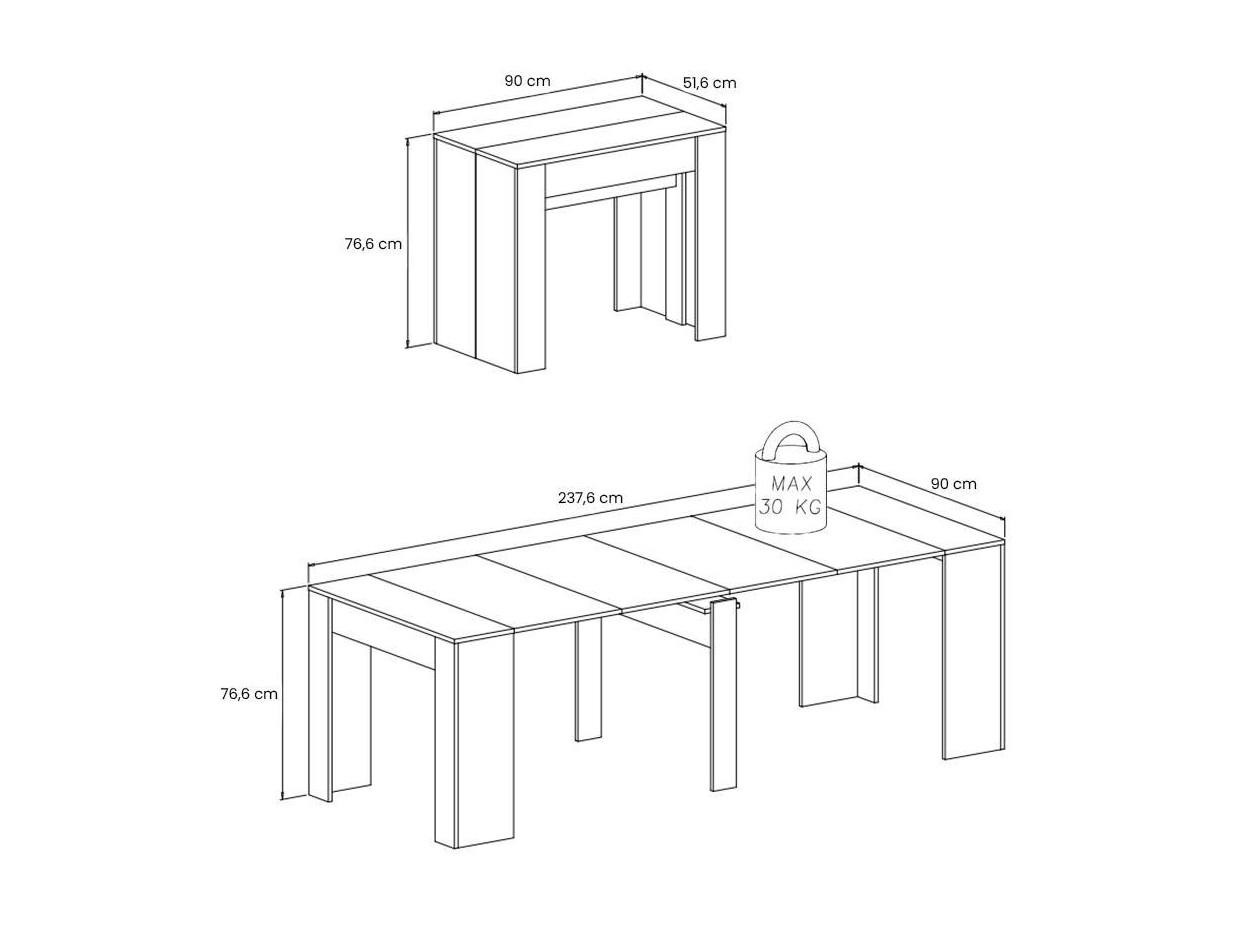 Table console à rallonge Dpanozz, Table avec rallonges, Console polyvalente, Table à manger extensible jusqu'à 10 places, 90/237x51h78 cm, Ciment
