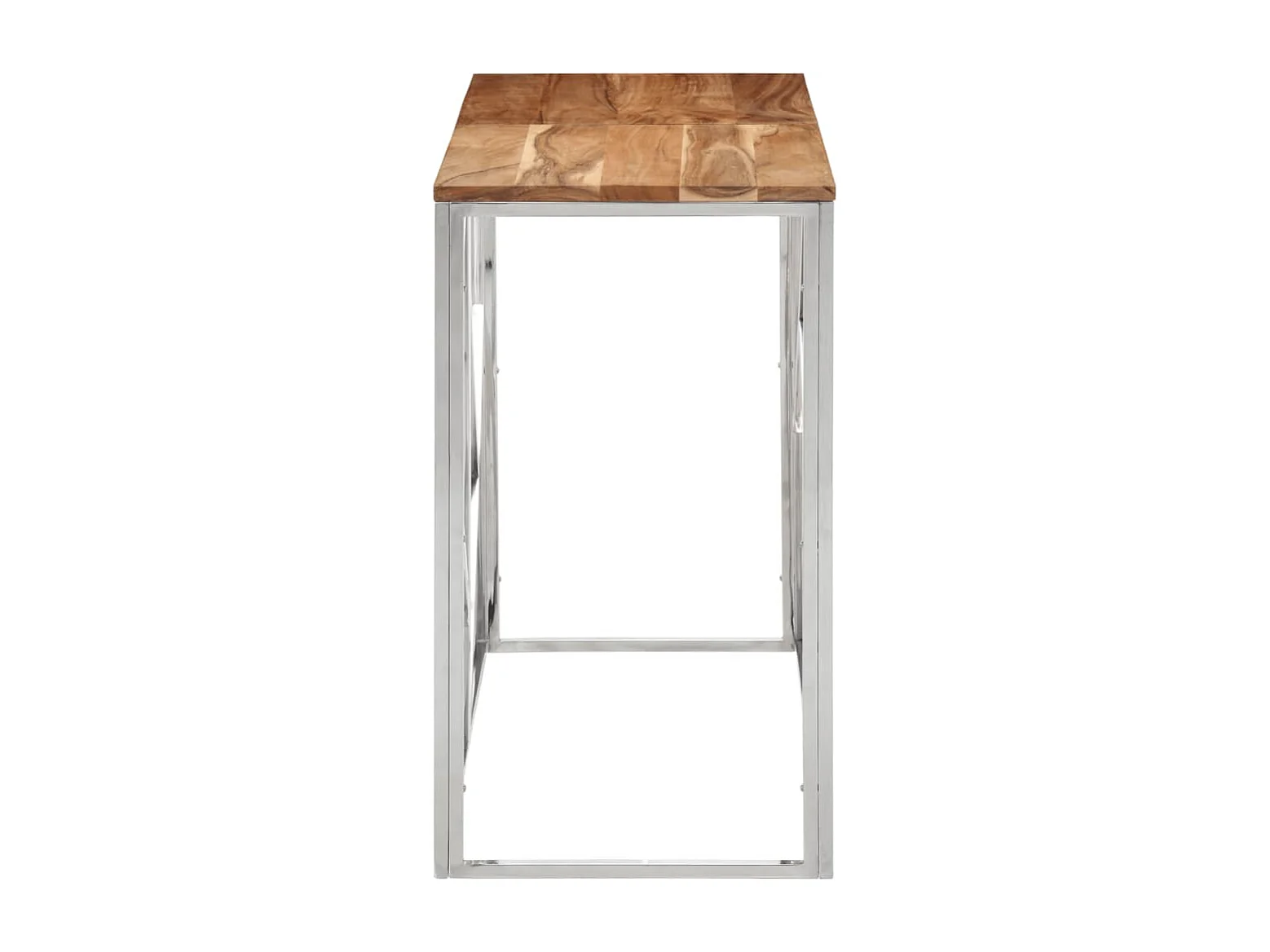 Table console argenté acier inoxydable et bois massif d'acacia