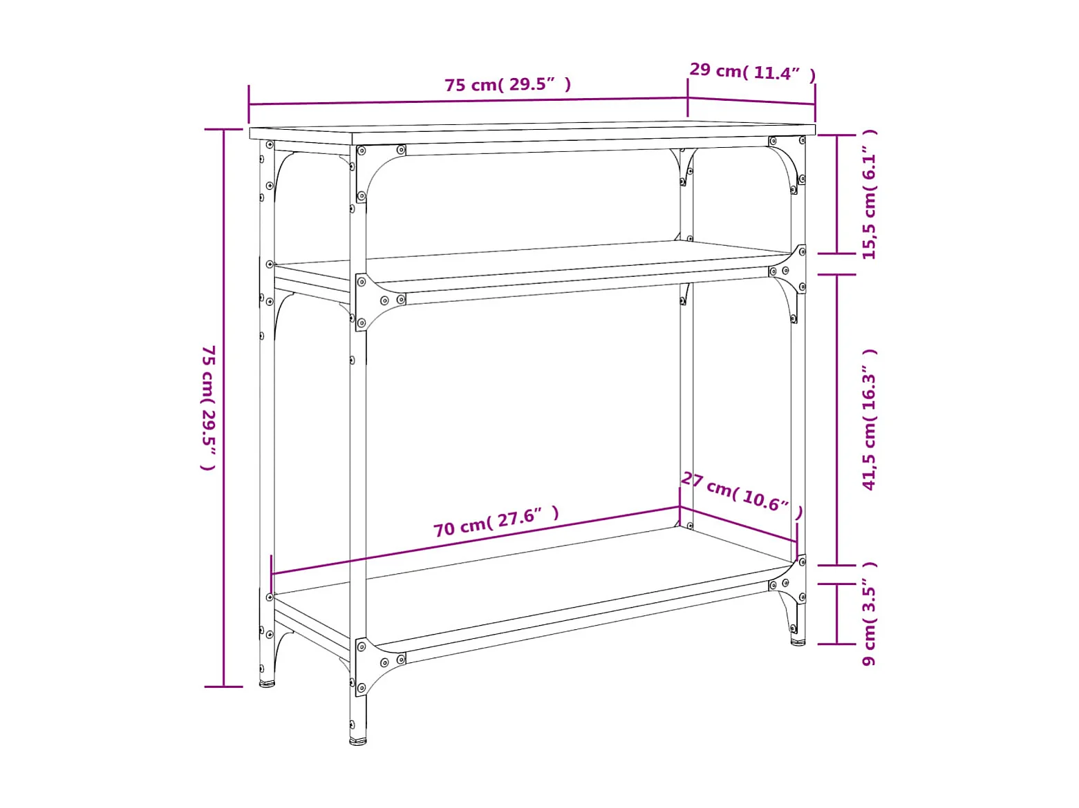 Table console avec étagère métal marron 75 x 30 x 75 cm DEC031641