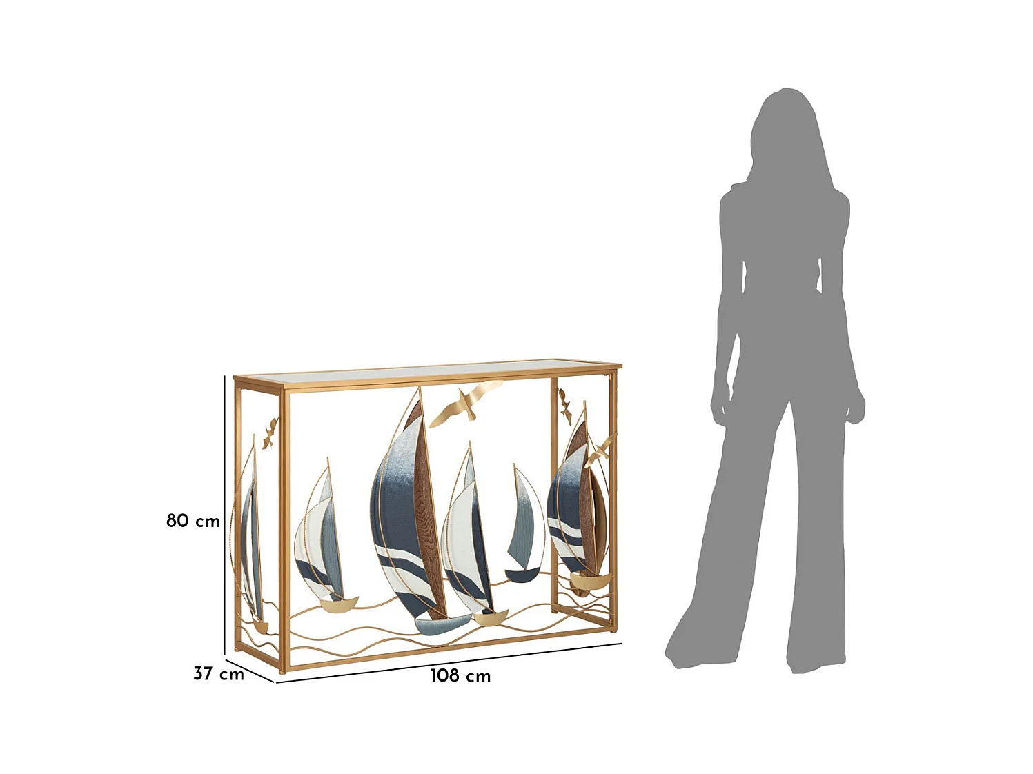 Table Console Bateaux 9, Multicouleur, 108x37x80 cm, Seven Design