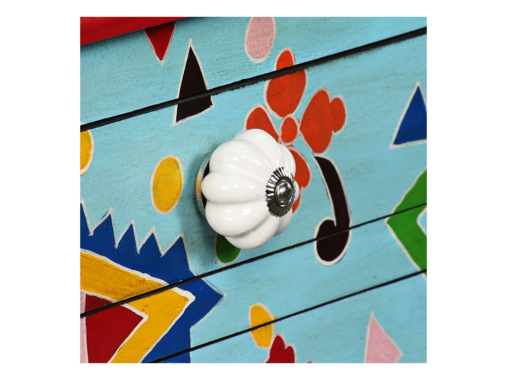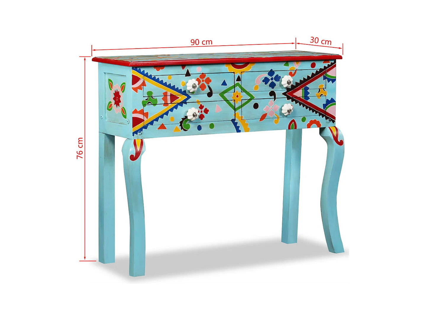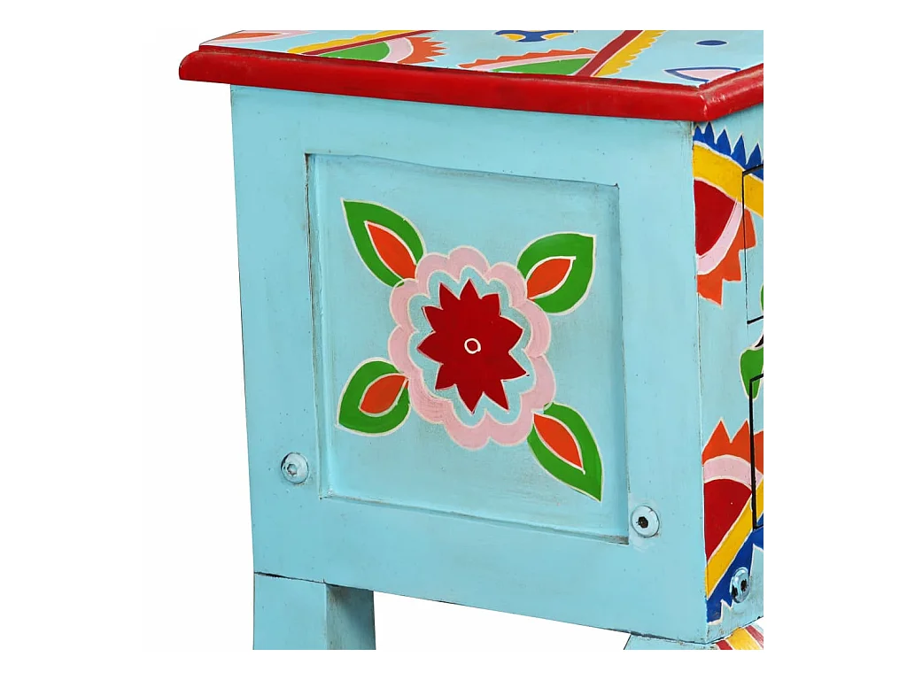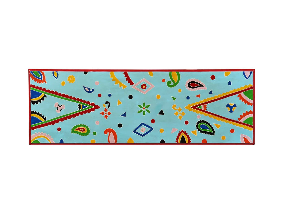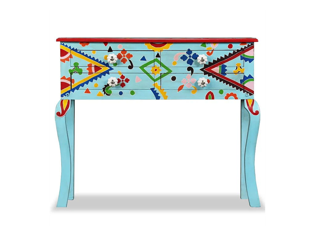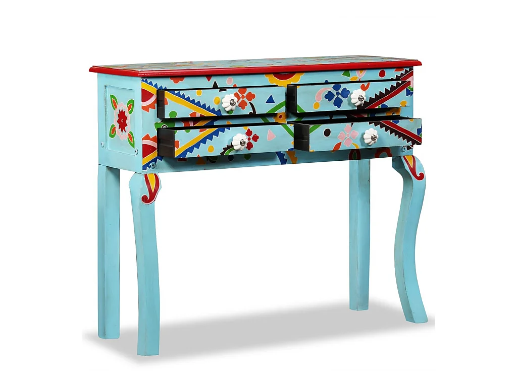 Table console Bois de manguier massif Bleu peint à la main