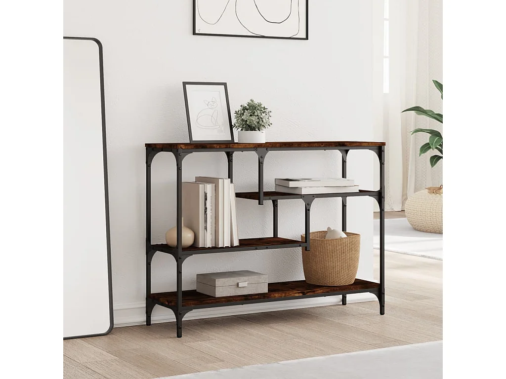 Table console chêne fumé 100x30x75 cm bois d'ingénierie