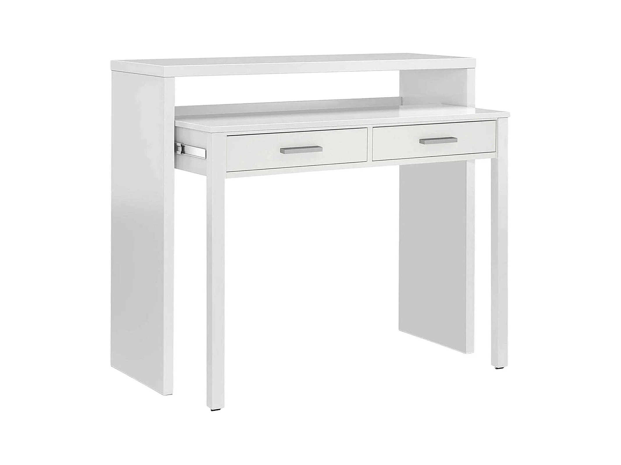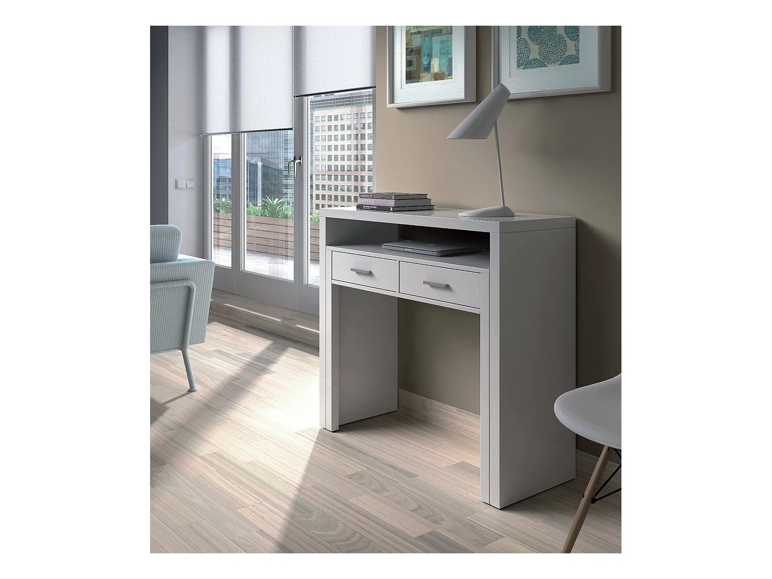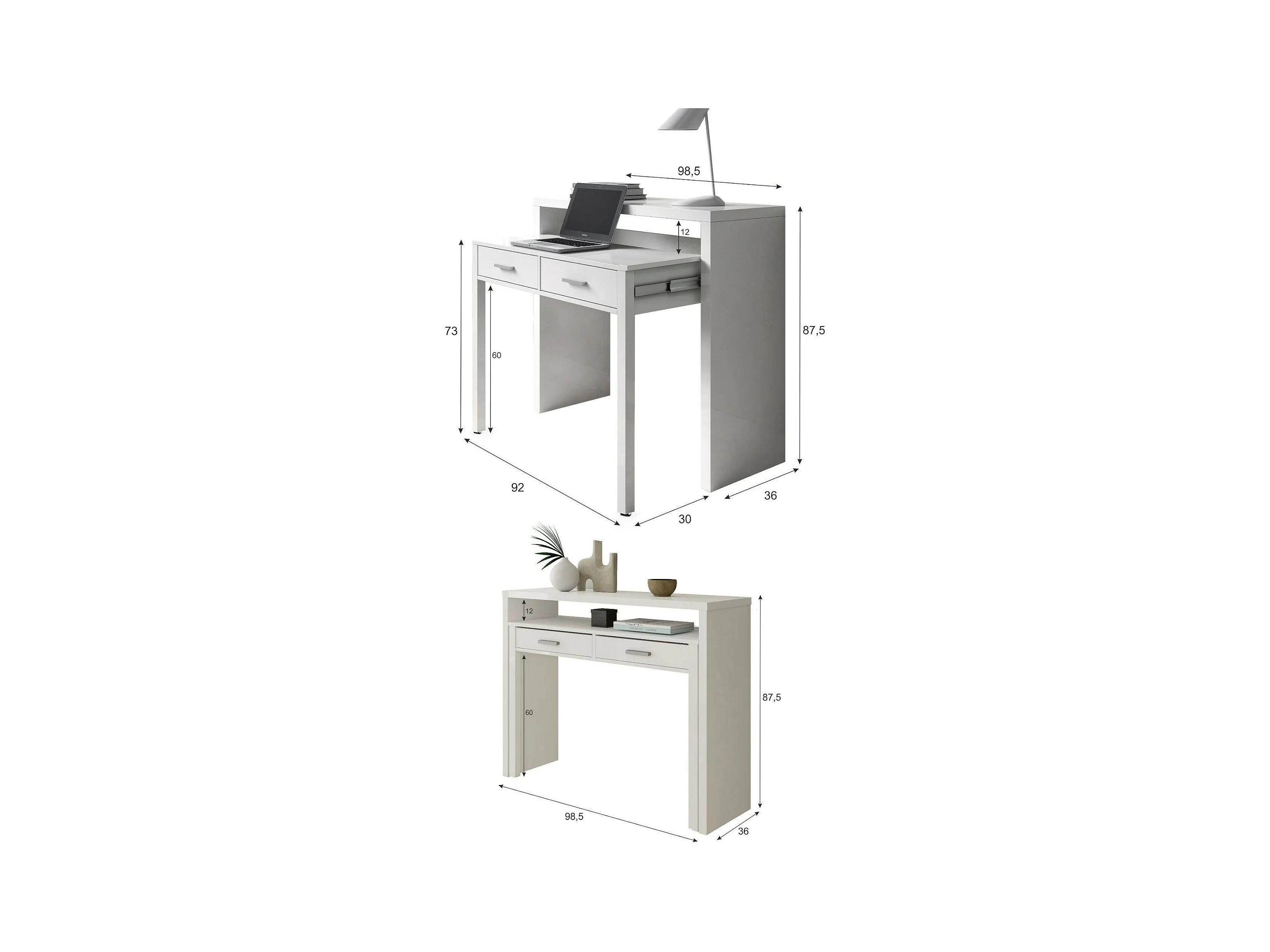Bureau Damodi, Bureau avec plateau extensible, Bureau PC avec 2 tiroirs, 99x36h88 cm, Blanc