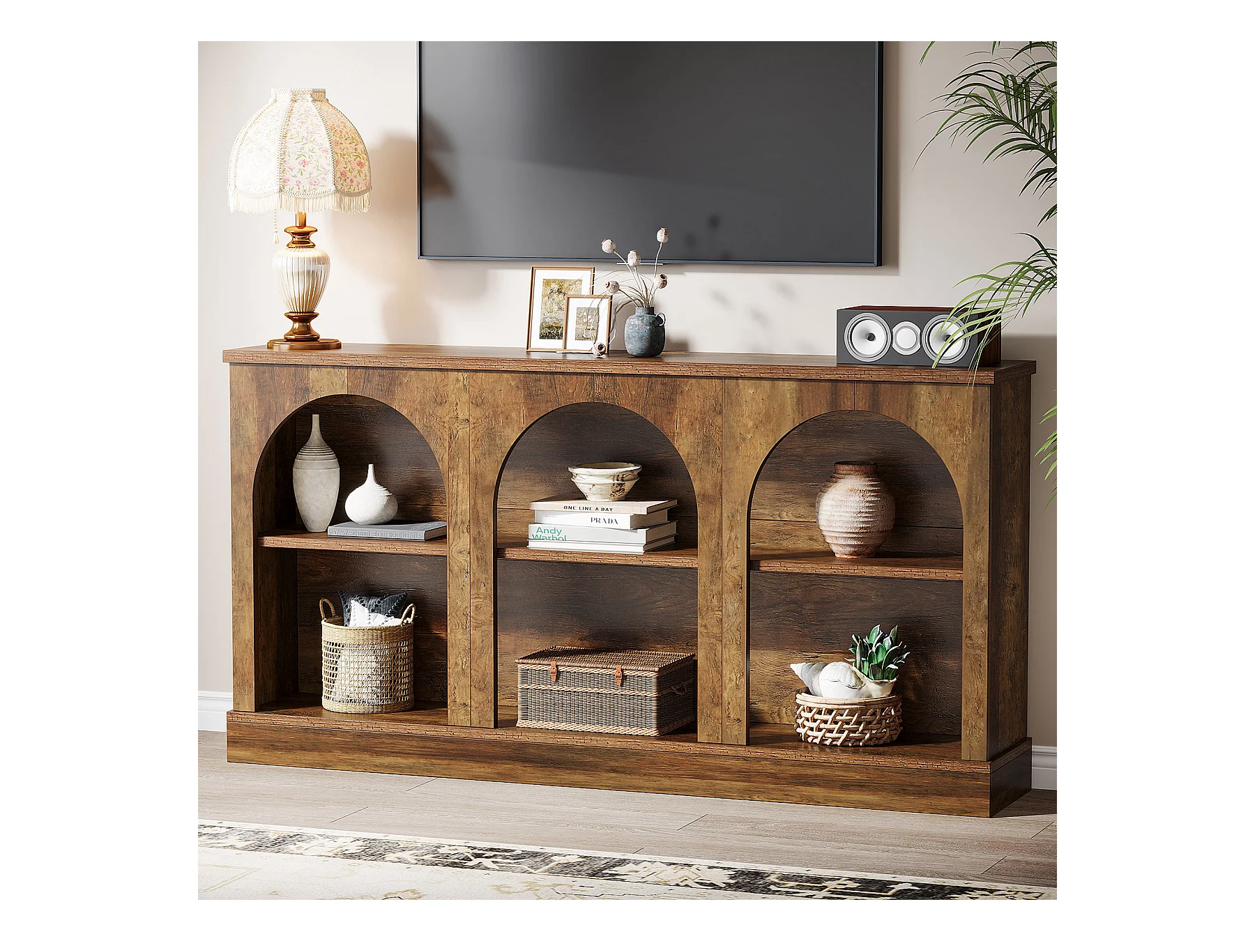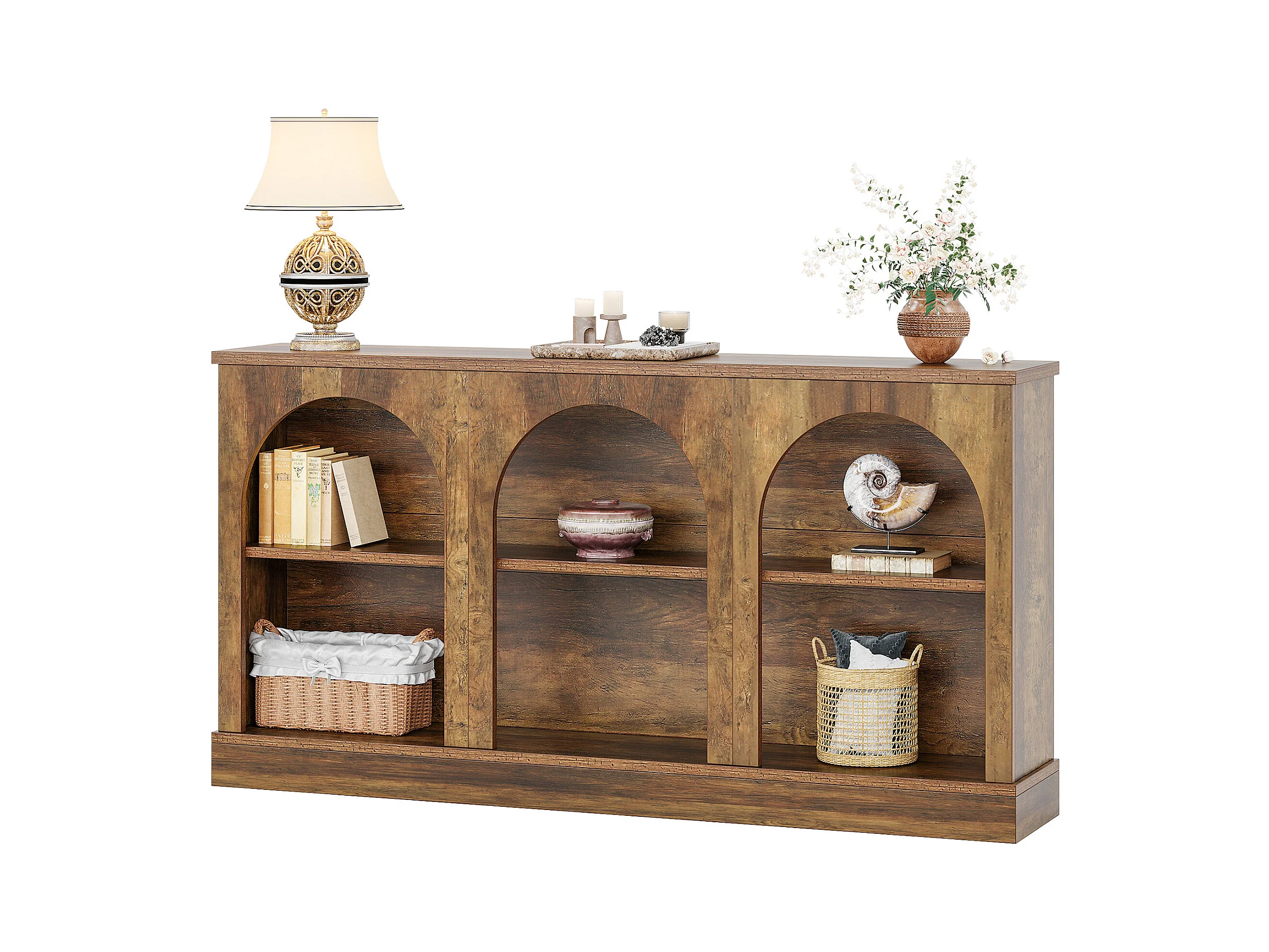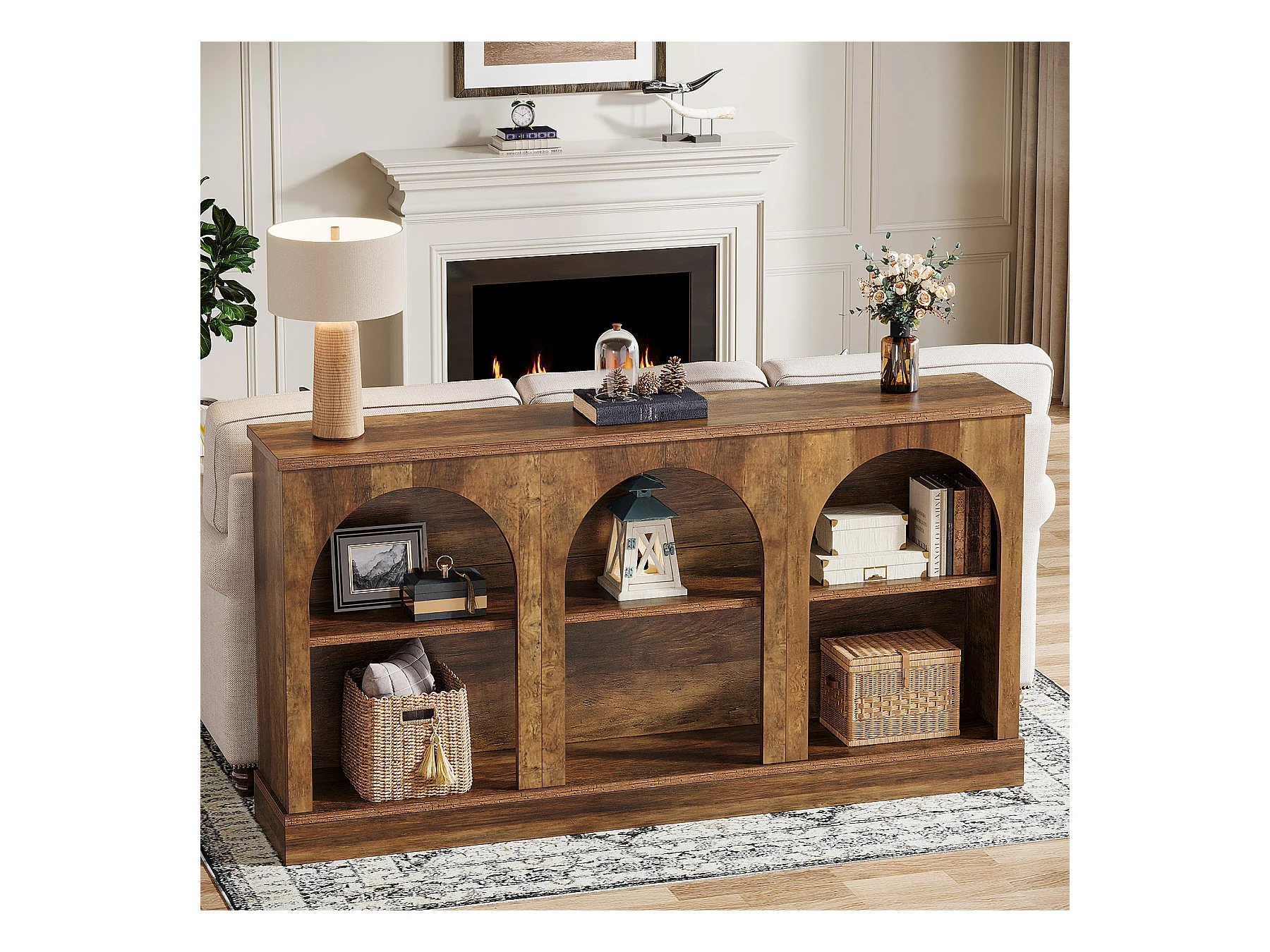 Table console de style rustique de 160 cm de long avec 3 niveaux de rangement, marron