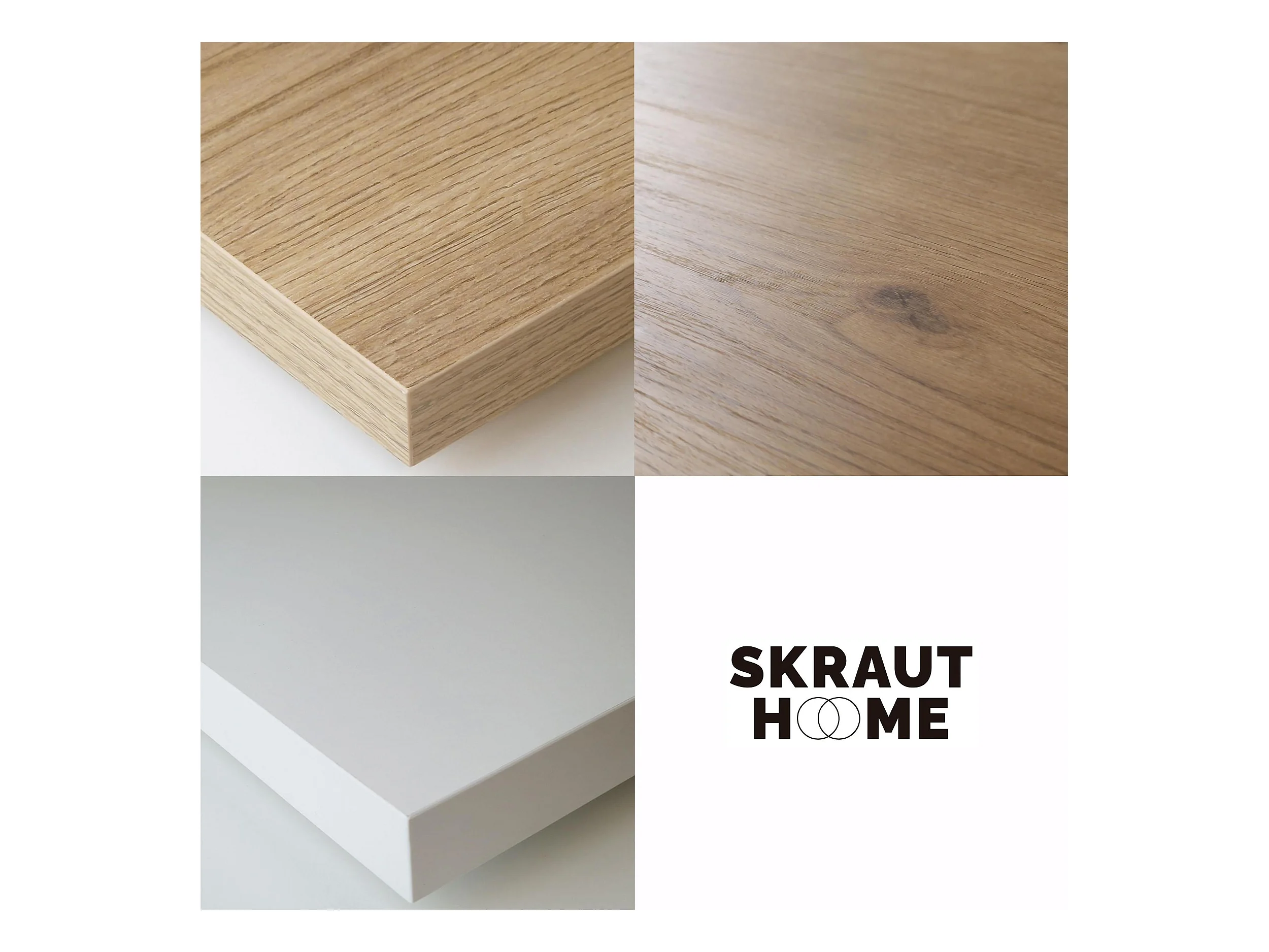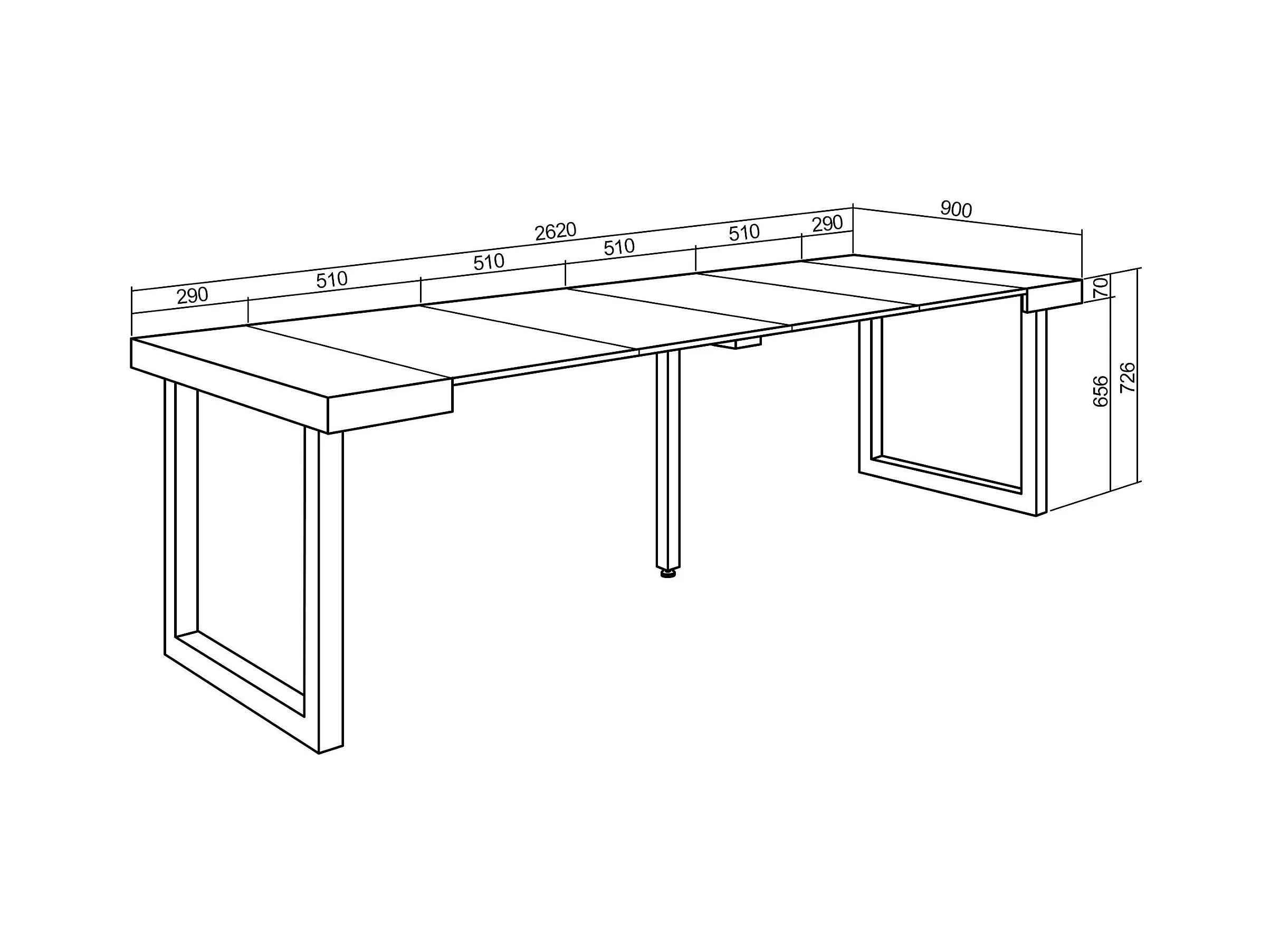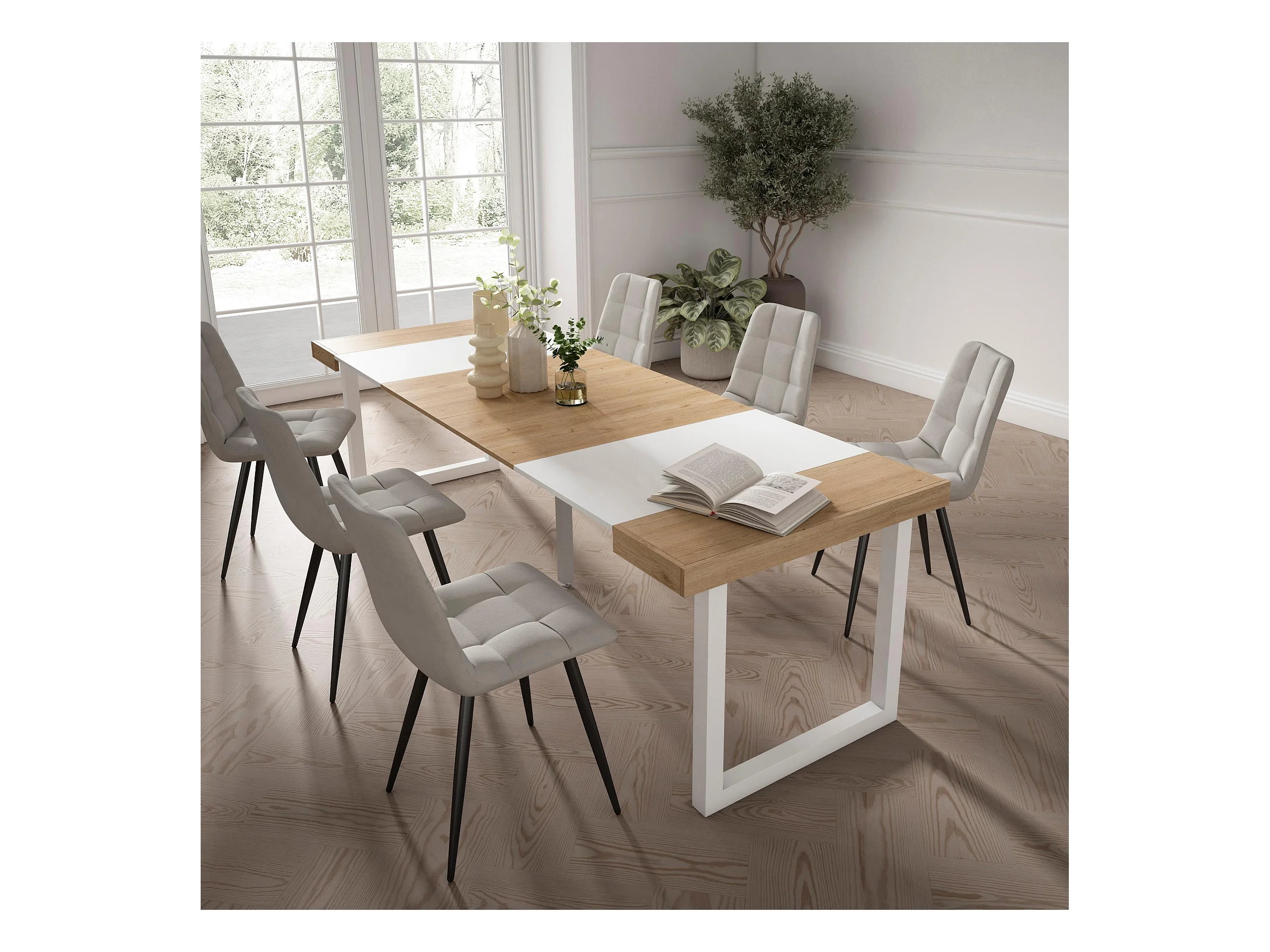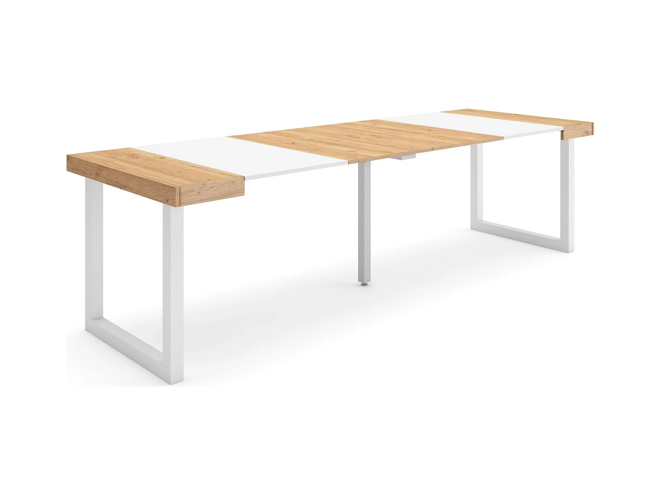 Table console extensible, 262x90x73cm, Pour 12 personnes, Pieds bois massif, Chêne et blanc